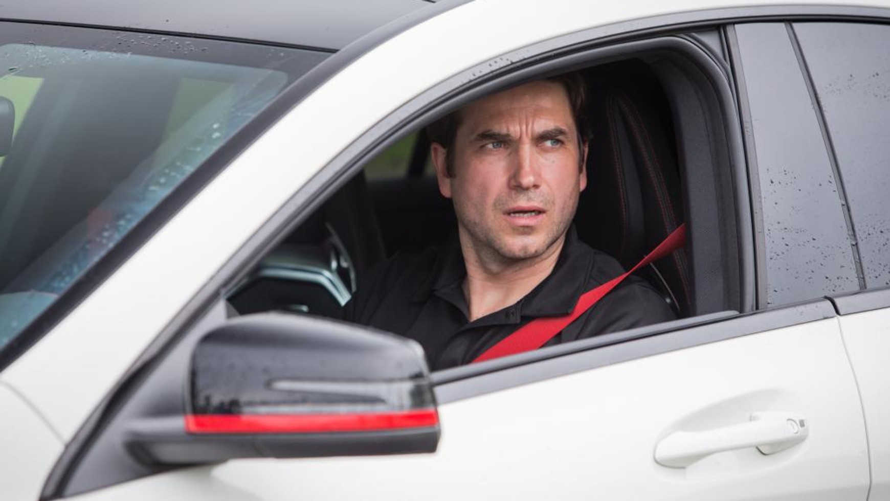 Aktor zostawił jednak na chwilę CLS-a na parkingu i przesiadł się do jeszcze szybszych maszyn – również spod znaku trójramiennej gwiazdy. Podczas szkolenia z cyklu AMG Driving Academy miał okazję zapoznać się z teoretycznymi tajnikami dynamicznej jazdy po torze oraz bezpiecznego przeprowadzania nagłych manewrów. Później przyszedł czas na praktykę – slalom, hamowanie awaryjne i próby sprawnościowe pod okiem doświadczonych instruktorów.