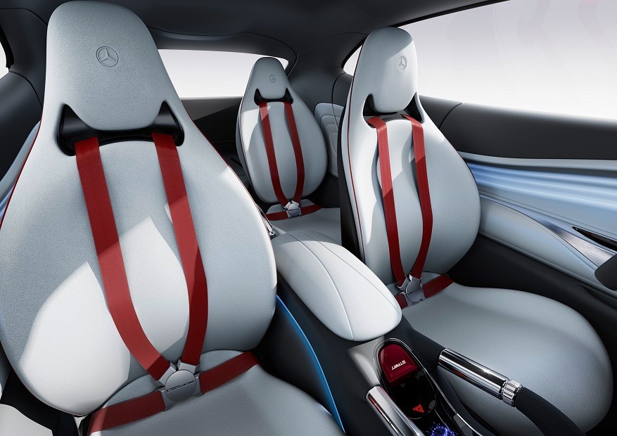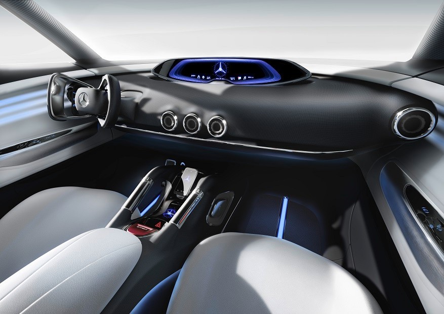 Znakiem szczególnym nowego prototypu Mercedes-Benz jest osłona chłodnicy z kolorowym wyświetlaczem, którego wygląd nawiązuje do statków kosmicznych znanych z serialu i filmów „Star Trek”. Za chłodzenie silnika odpowiadają innowacyjnie poprowadzone wloty powietrza po bokach i u dołu karoserii. Odcień matrycy zdradza aktualny tryb pracy układu napędowego: w trybie elektrycznym miniaturowe gwiazdy w osłonie chłodnicy rozbłyskują na niebiesko i zdają się przesuwać w kierunku środka, a w hybrydowym eco przybierają kolor fioletowy. Program sportowy wyróżnia się czerwonym podświetleniem i ruchem gwiazd w kierunku boków pojazdu. Po zaparkowaniu osłona chłodnicy przybiera odcień niebieski i zaczyna subtelnie pulsować.