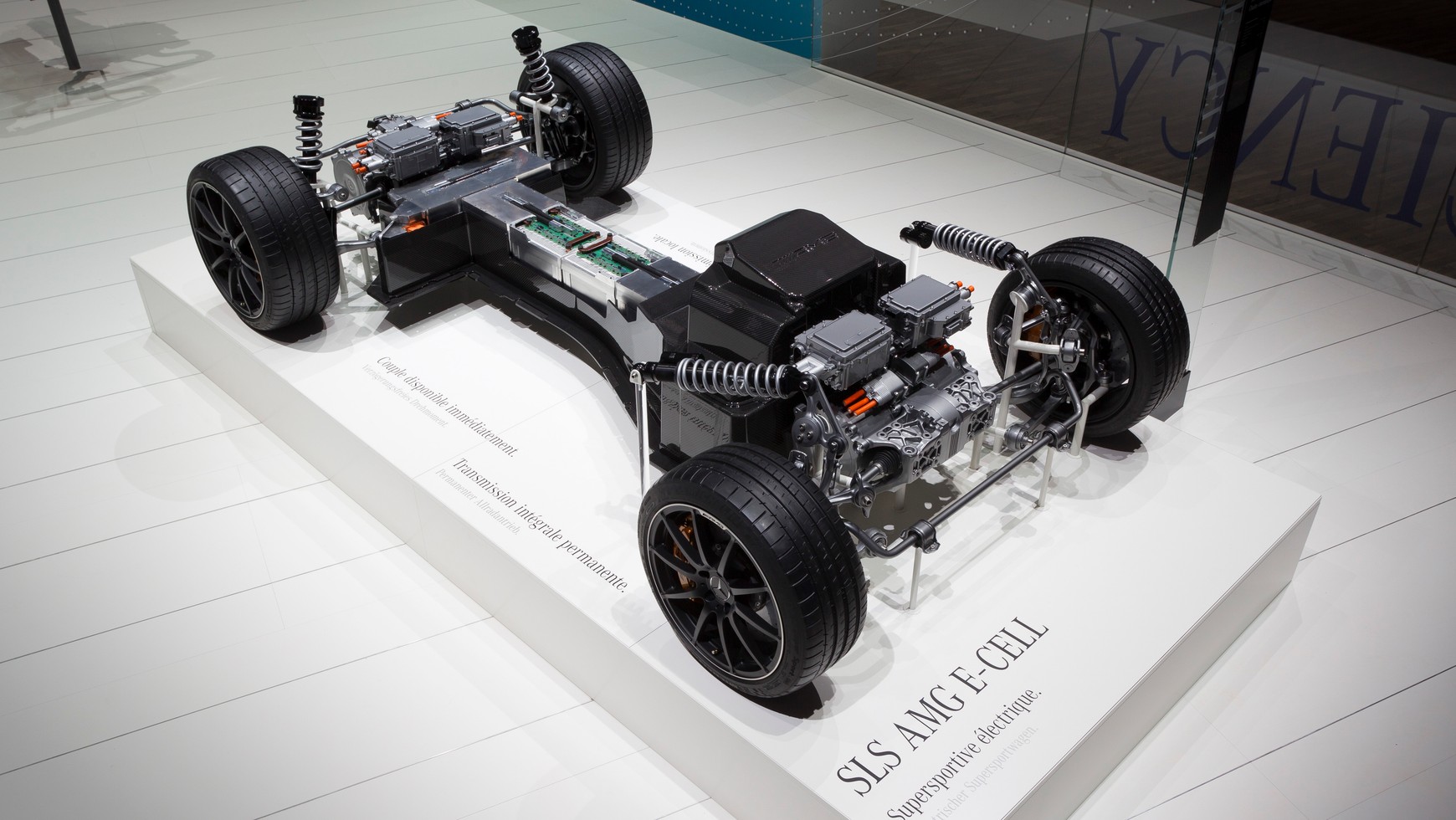 Silniki kręcą się do 12 000 obr./min. należy dodać, że każde z kół jest napędzane przez niezależny silnik zainstalowany w niedużej odległości od koła. W konsekwencji dzięki krótszym półosiom zmniejszono masę nieresorowaną.