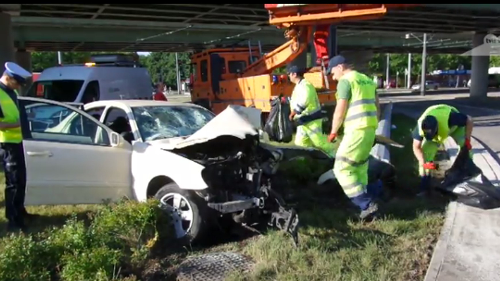 Autem podróżowało 10 osób, w tym 2 w bagażniku. Wszystko wskazuje na to, iż wracali z zakrapianej imprezy. W wyniku tego zdarzenia 7 pasażerów zostało rannych. Poza rozbitym Mercedesem, ucierpiał także słup oświetleniowy, który został przełamany i spadł na wiadukt nad rondem. Uszkodzona została także trakcja tramwajowa.