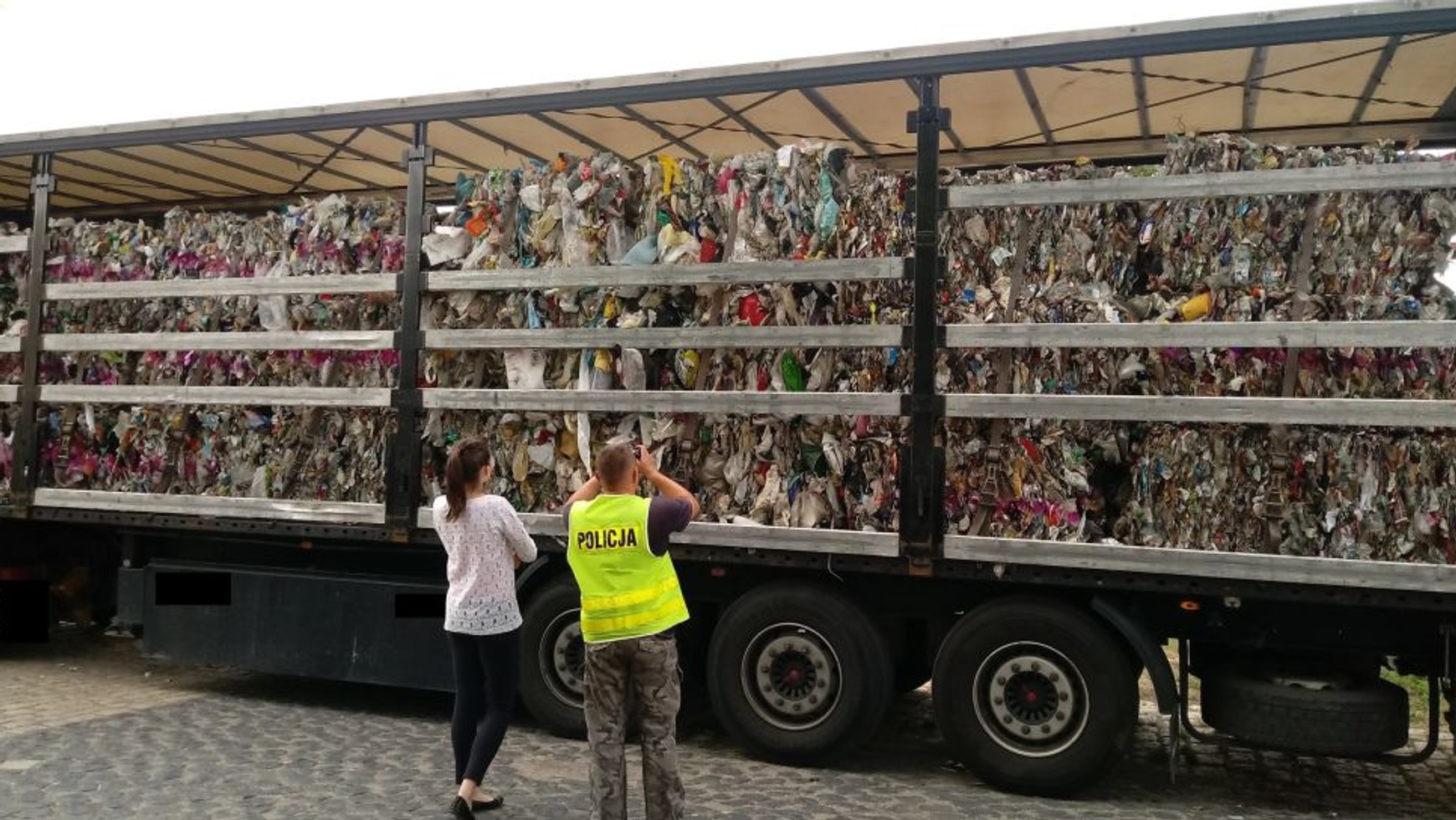 W dokumentach 54 sprasowane paczki znajdujące się w zatrzymanym transporcie zostały zakwalifikowane i opisane jako plastik. W rzeczywistości okazały się one odpadami komunalnymi pochodzącymi z Niemiec.