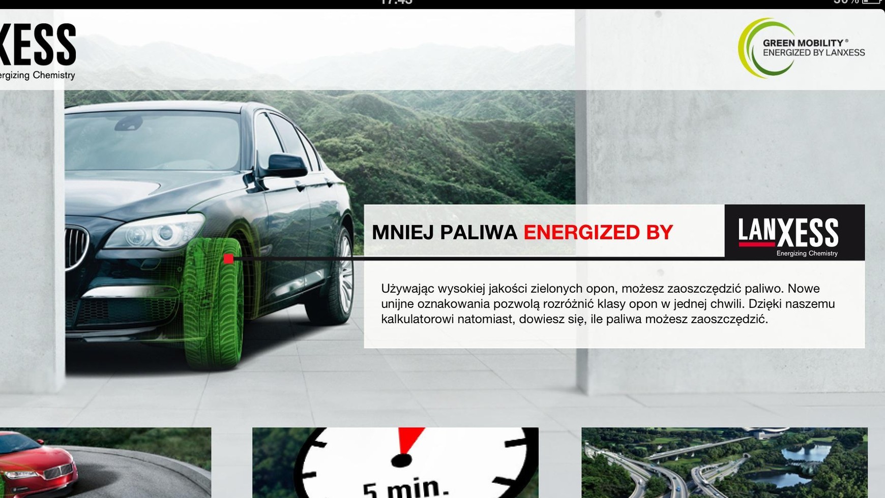 LANXESS przygotował również nową stronę – www.eko-mobilnosc.pl, która jest bazą informacji na temat etykiet na opony i korzyści wynikających ze stosowania „zielonych” opon dostępnych dla polskich kierowców. Bezpłatny Kalkulator Oszczędności Paliwa LANXESS jest dostępny bezpośrednio w Apple Appstore jak również na https://app.eko-mobilnosc.pl
