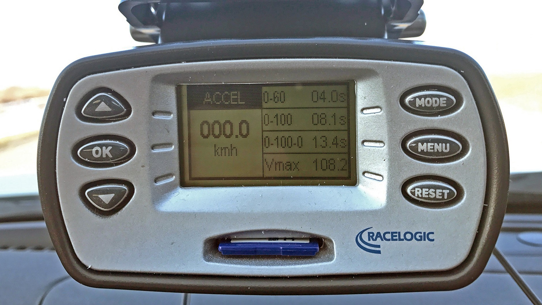 Po kilku minutach wszystko było gotowe do sprawdzianu 0-100 km/h: napęd 4x4, tryb jazdy Sport, skrzynia automat, kontrola trakcji wyłączona, klima wyłączona, a procedura startowa zapamiętana. Od czwartej próby włączyliśmy Racelogica i czekaliśmy na rozwój wydarzeń. Niestety podczas startu przydusiłem motor, ponieważ za długo przetrzymałem go na obrotach i wynik nie był rewelacyjny: 8.1 s, czyli 0.1 s gorszy wynik od podanego w specyfikacji.