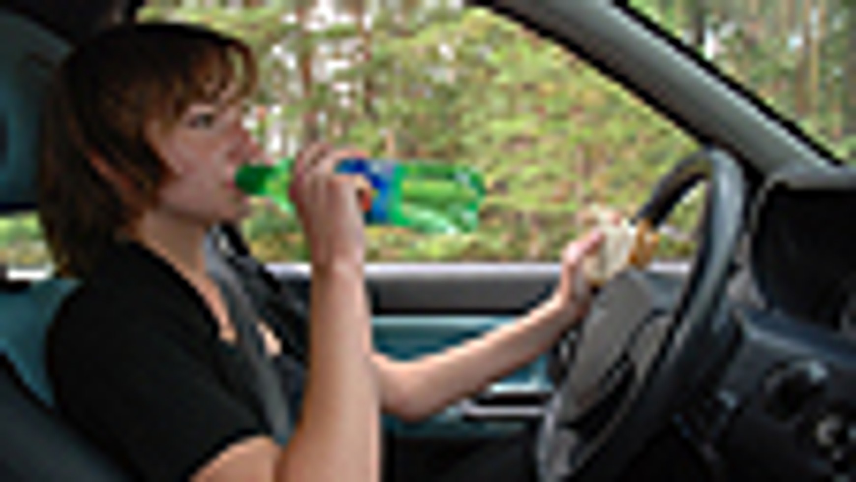Jedzenie kanapek za kierownicą to skrajna nieodpowiedzialność. Picie napoju z butelki jest jeszcze większą głupotą: podczas tej czynności trudno obserwować drogę, a butelka może spaść pod pedały.Zapamiętaj: jeżeli prowadzisz, to sam decyduj, kiedy i gdzie chcesz zrobić postój. Nie pozwól pasażerom szantażować kierowcy!