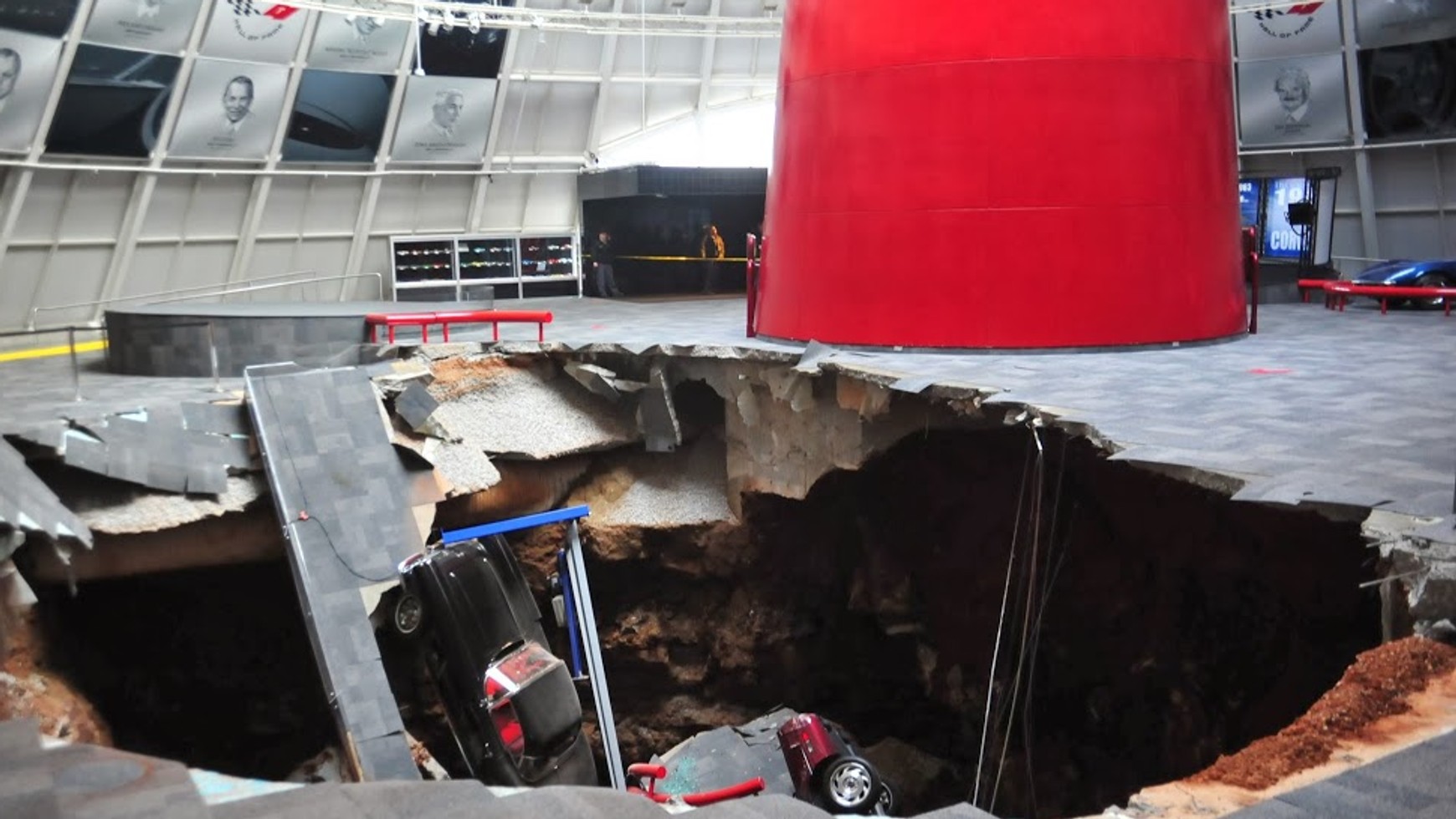 Początkowo sprawa wyglądała znacznie groźniej niż się później okazało. W wielką dziurę, jaka powstała pod podłogą sali wystawowej Muzeum Corvette w Kentucky (USA) wpadło osiem sportowych samochodów. Pierwsze komunikaty mówiły o milionowych stratach.