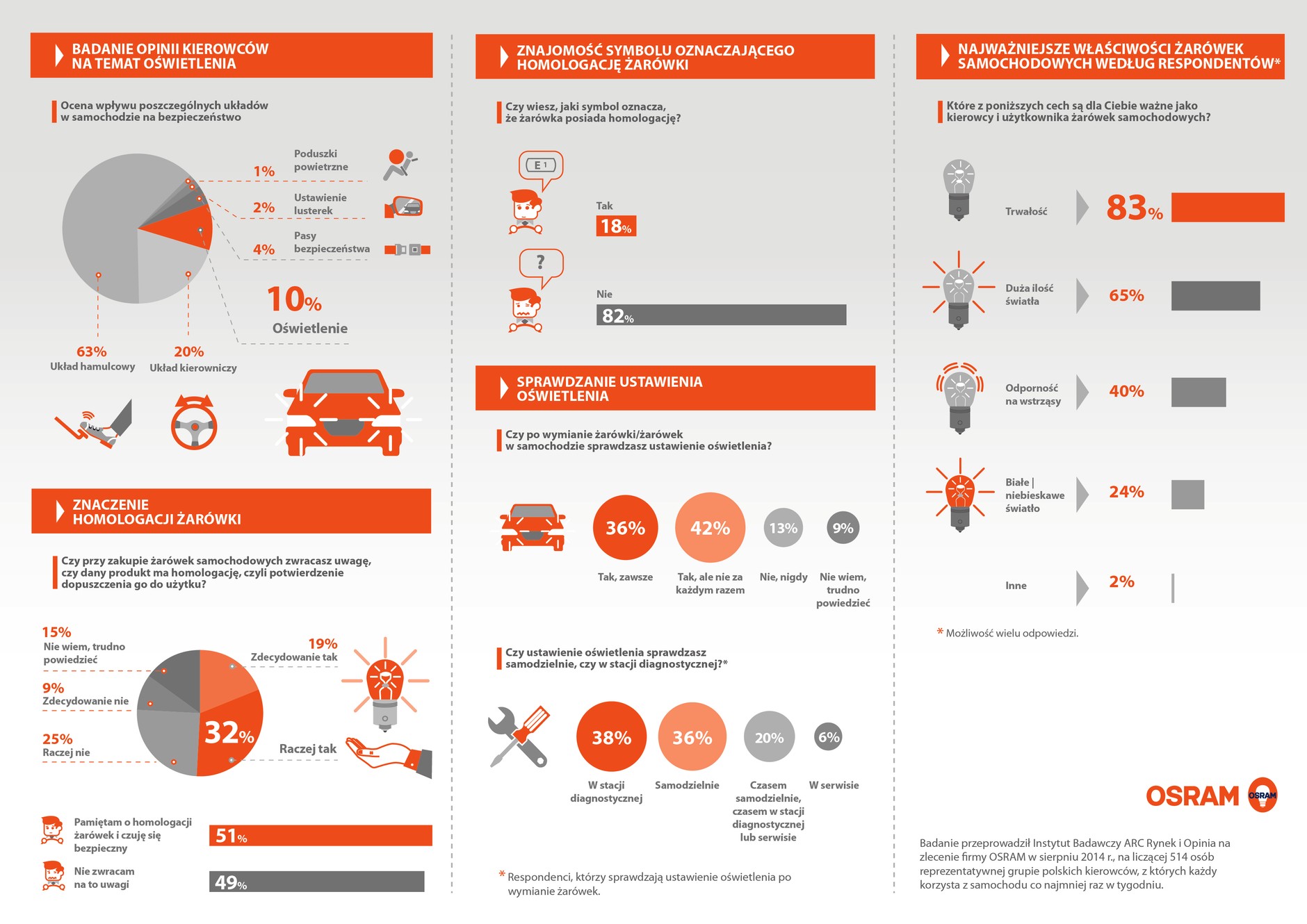 Badanie przeprowadził Instytut Badawczy ARC Rynek i Opinia na zlecenie firmy OSRAM w sierpniu 2014 r., na liczącej 514 osób reprezentatywnej grupie polskich kierowców, z których każdy korzysta z samochodu co najmniej raz w tygodniu.