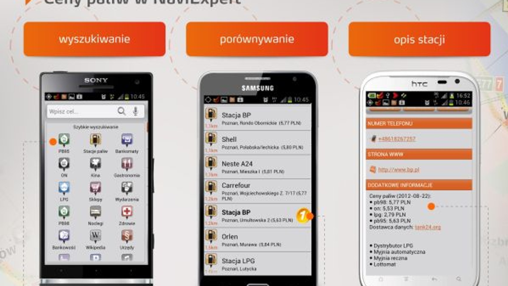 Nowa funkcjonalność nawigacji mobilnej NaviExpert powstała, by ułatwić kierowcom orientowanie się w cenach paliw na najbliższych stacjach. Czytelna i intuicyjna porównywarka dostarcza informacji o aktualnych cenach paliw według wybranej kategorii oraz wskazuje te stacje, na których można zatankować najtaniej. By z niej skorzystać nie trzeba mieć wykupionego abonamentu - wystarczy za darmo pobrać aplikację na telefon z getne.pl i skorzystać z wyszukiwarki. Usługa jest dostępna w nowszych wersjach oprogramowania NaviExpert. Wkrótce pojawi się także dla telefonów z systemem Windows Phone.