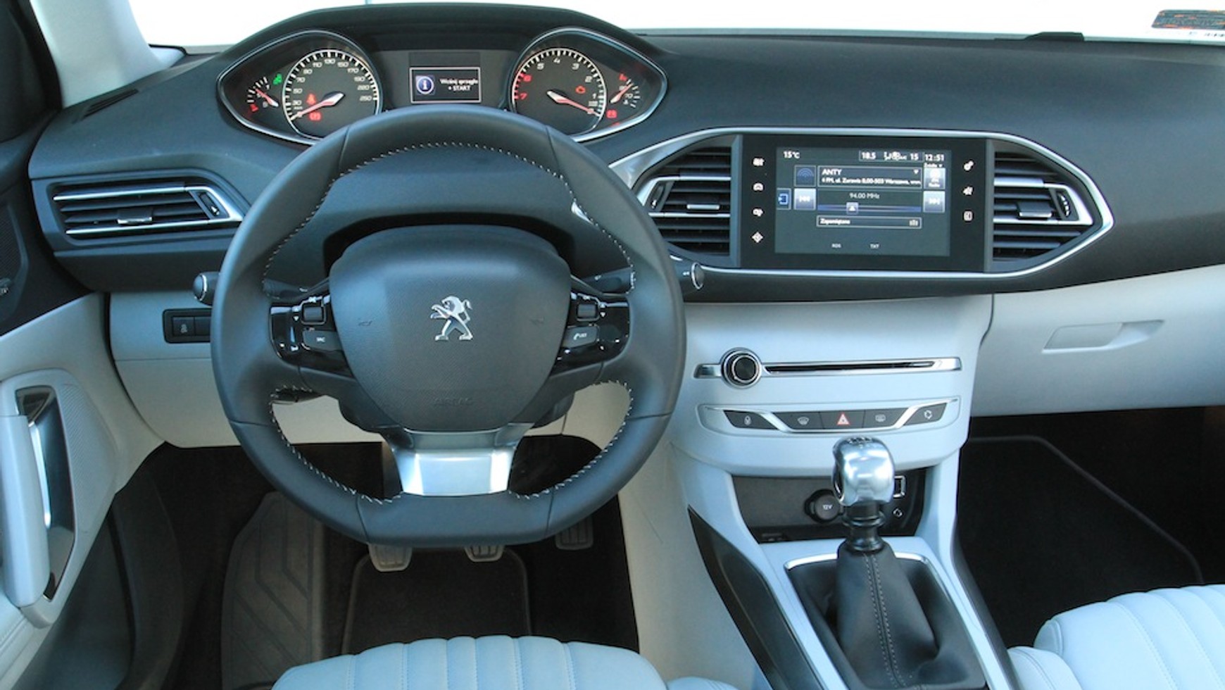 Red. Janusz Borkowski: „Nie mam nic przeciwko nietypowym rozwiązaniom, wnętrze powinny być jednak ergonomiczne. Zbyt daleko oddalone od siebie zegary w 308 nie pozwalają obserwować obydwu wskaźników jednocześnie, a obrotomierz ze wskazówką poruszającą się w lewą stronę rozpraszał mnie. Do tego koło kierownicy zasłaniało wyświetlacz”.