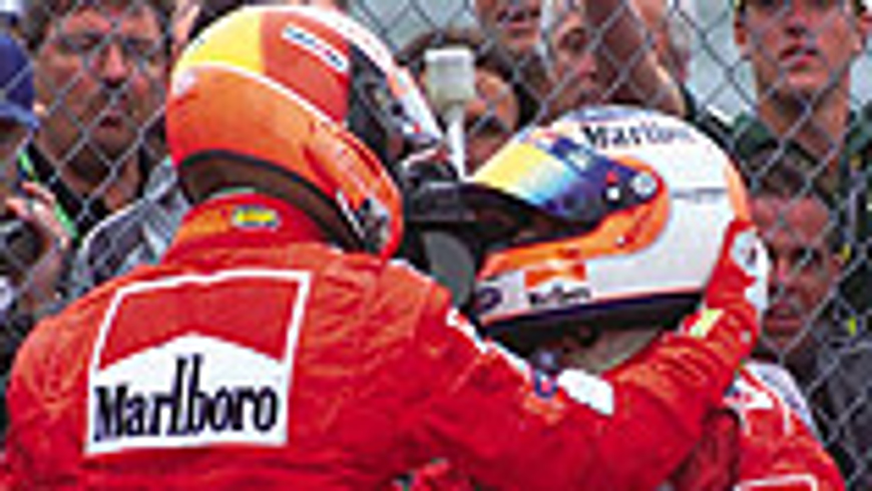 Po treningach kwalifikacyjnych lider mistrzostw świata zajmował pierwsze pole startowe. Kolejne z niewielką stratą (0,098 sekundy) zajął David Coulthard. W kolejnym rzędzie stanęli Rubens Barrichello i Mika Häkkinen. Nieźle spisali się także kierowcy teamu BAR - Jacques Villeneuve był szósty, a Ricardo Zonta ósmy.Start najlepiej wyszedł Schumacherowi, tuż za nim podążał Coulthard, a dalej Villeneuve, który poradził sobie z Barrichello i Häkkinenem. Po kilkunastu okrążeniach Michael Schumacher stracił swego najbliższego rywala. David Coulthard musiał zjechać do boksów na 10-sekundową karę stop and go. McLaren Szkota, gdy niespodziewanie zgasł na starcie, został niezgodnie z przepisami ponownie uruchomiony przez mechaników. Regulamin jest regulaminem i tak Coulthard stracił szansę na co najmniej sześć punktów.Niedługo potem Barrichello, a także Häkkinen wyprzedzili Villeneuve'a. Przewaga Schumachera wynosiła wówczas około 30 sekund.Nad torem zaczęły gromadzić się deszczowe chmury i wkrótce zaczęło padać. Pierwszy z czołówki do boksów po opony deszczowe zjechał Schumacher. W tym samym okrążeniu przed boksem Ferrari zjawił się także Barrichello. Brazylijczyk musiał nieco poczekać na zmianę opon. Te trzeba było wydobyć ze specjalnych termosów i wynieść z boksu. Trwało to kilkanaście zbędnych sekund. W końcowej deszczowej części wyścigu Barrichello z całych sił gonił swego partnera. Na metę wpadli niemal jednocześnie. Dwa czerwone Ferrari dzieliło tylko 0,174 sekundy.Dla włoskiego teamu był to bardzo udany weekend. Zupełnie inne nastroje były u McLarena. Dla tego brytyjskiego zespołu było to 500 Grand Prix. Coulthard zajął w nim po ambitnym pościgu siódme miejsce, a Häkkinenowi po zaciętym pościgu nie udało się wyprzedzić Giancarlo Fisichelli.Grand Prix Kanady (305.049 km): 1. Michael Schumacher (Ferrari) 1.41.12,313 (180,849 km/h); 2. Rubens Barrichello (Ferrari) - 0,174; 3. Giancarlo Fisichella - 15,365; 4. Mika Häkkinen (McLaren) -18,561; 5. Jos Verstappen (Arrows) - 52,208; 6. Jarno Trulli (Jordan) - 1.01,687.Klasyfikacja mistrzostw świata Formuły 1. Kierowcy: 1. Michael Schumacher 56, 2. David Coulthard 34, 3. Mika Häkkinen 32, 4. Rubens Barrichello 28, 5. Giancarlo Fisichella 18, 6. Ralf Schumacher 12.Konstruktorzy: 1. Ferrari 84, 2. McLaren 66, 3. Benetton 18, 4. Williams 14, 5. Jordan, 6. BAR 6, 7. Jaguar, Sauber i Arrows po 3.