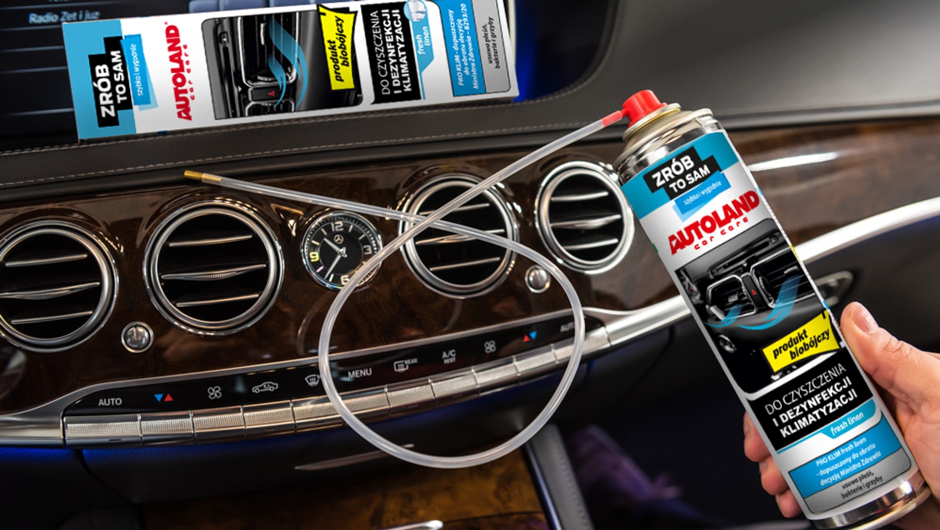 Firma Autoland ma w swojej ofercie jeszcze inny środek biobójczy – Pro Klim – który aplikuje się w nieco inny sposób. To preparat w spreju wyposażony w elastyczną sondę, która pomoże zaaplikować środek bezpośrednio do nawiewów.