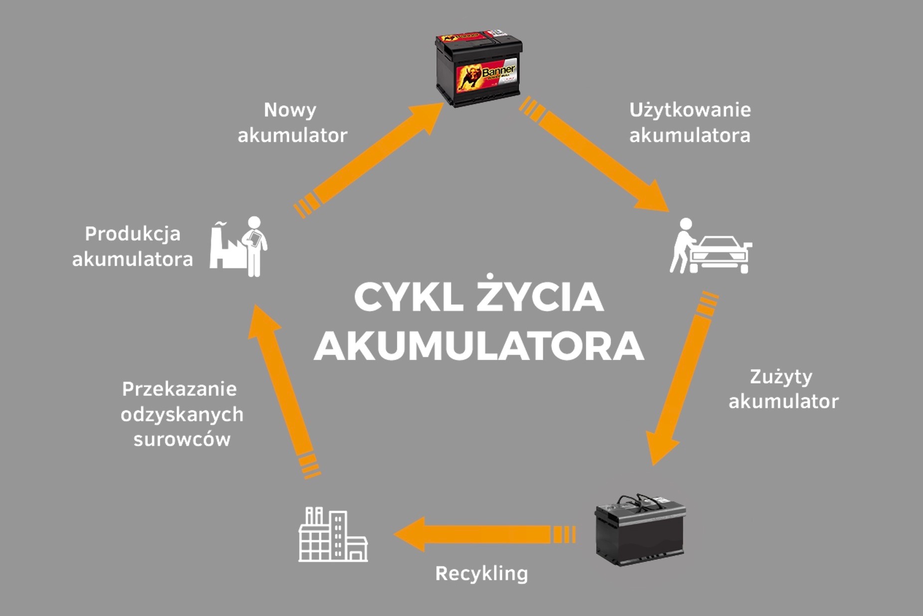 - Renomowani producenci akumulatorów korzystają z ołowiu pochodzącego z odzysku. Przykładowo akumulatory Banner zawierają ołów pochodzący wyłącznie z recyklingu