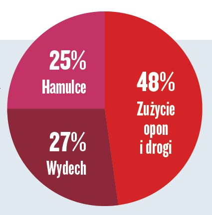 - Ok. 5 proc. pyłów PM10 pochodzi z transportu drogowego