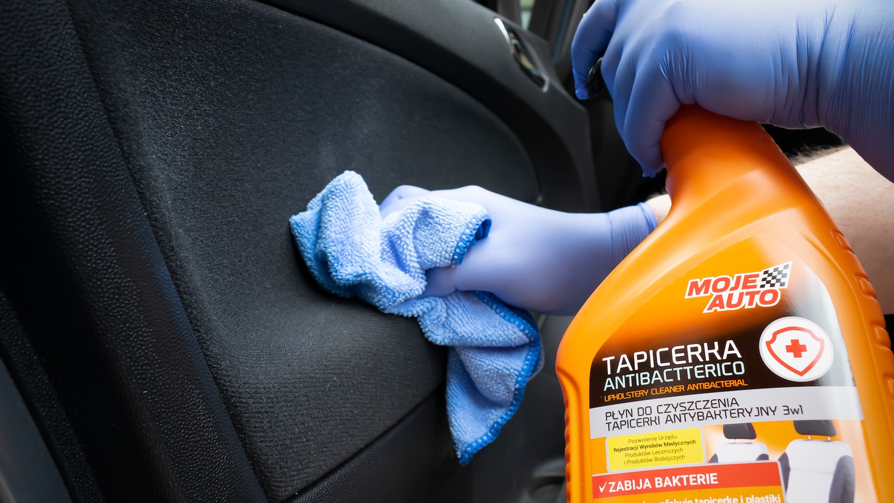 Częstotliwość prania tapicerki w aucie powinna zależeć od intensywności jej używania, jednak nawet w rzadko używanym samochodzie tapicerka wymaga odświeżenia nie rzadziej niż na pół roku. Nie chodzi przy tym tylko o wygląd – to też – ale o kompleksowe usunięcie bakterii, wirusów i roztoczy, które też przenoszą choroby. Tapicerkę w aucie wyczyścimy i odkazimy za pomocą preparatu Moje Auto Tapicerka Antibaccterico. Wystarczy odkurzony wcześniej czyszczony element (ważne: cały element, a nie jego fragment, np. całe oparcie fotela) spryskać preparatem, chwilę odczekać, a następnie lekko wyszorować czystą, niebarwiącą szmatką; jeśli materiał jest zaplamiony, można ostrożnie szorować go np. szczotką do tapicerki. Uwaga: kompleksowe pranie wnętrza samochodu warto zaplanować – trzeba wziąć pod uwagę, że musi ono wyschnąć, samochód musi postać z uchylonymi oknami, im jest cieplej, tym szybciej wyschnie. Dopóki auto schnie, nie sposób z niego korzystać – schnięcie zajmie, w zależności od tego, ile zużyjemy preparatu i jaka jest temperatura otoczenia od kilkudziesięciu minut do kilkunastu godzin. Operacja jest jednak prosta, a efekty są od razu widoczne (i wyczuwalne).