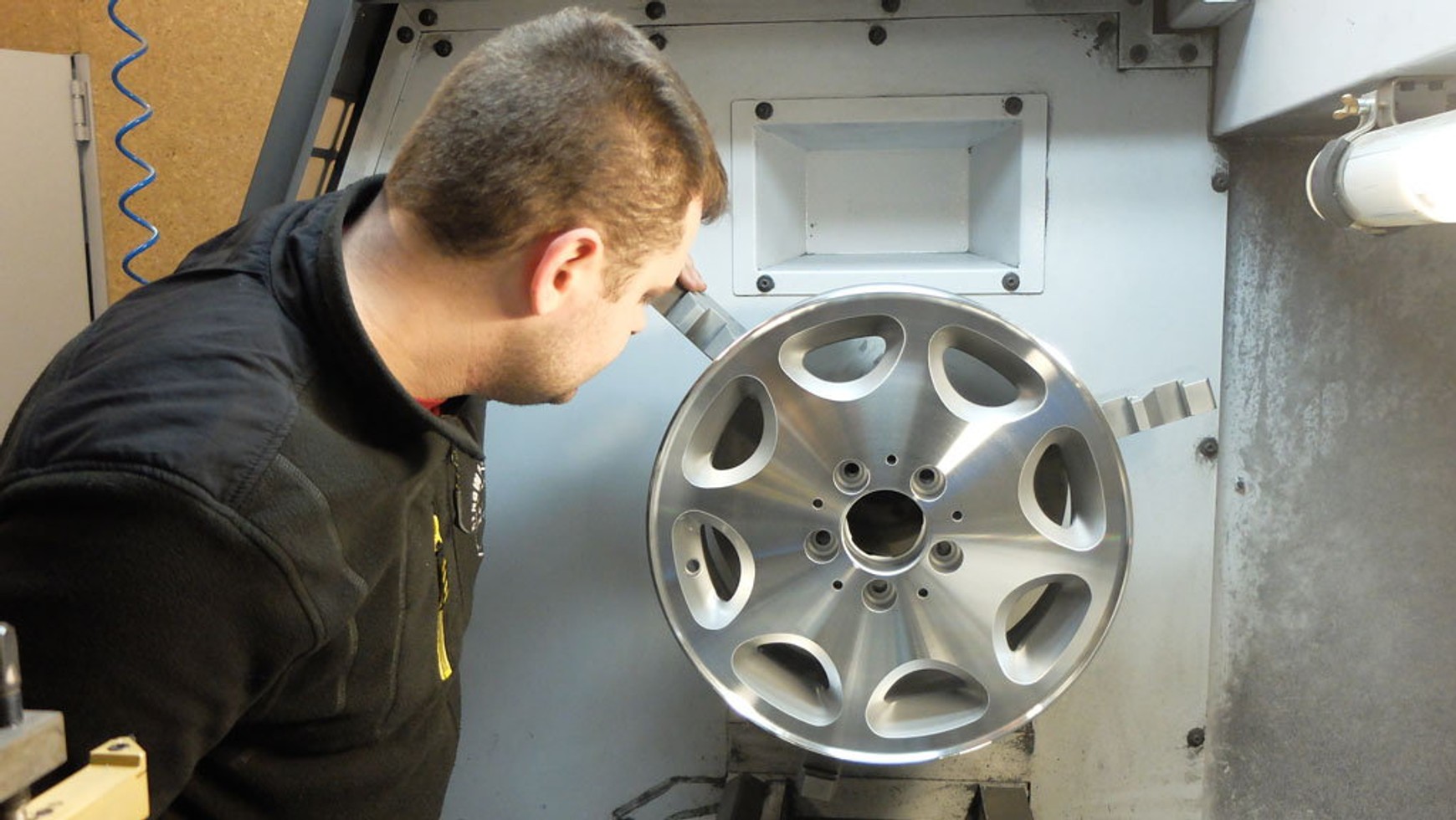 Dla większości warsztatów zajmujących się regeneracją felg jest to nowość; o ile przetoczenie rantów felg jest łatwe do zrobienia na zwykłej tokarce, to już do bezpiecznego stoczenia całych frontów obręczy potrzebne jest specjalne, sterowane komputerowo i – co oczywiste – drogie urządzenie działające z najwyższą precyzją.