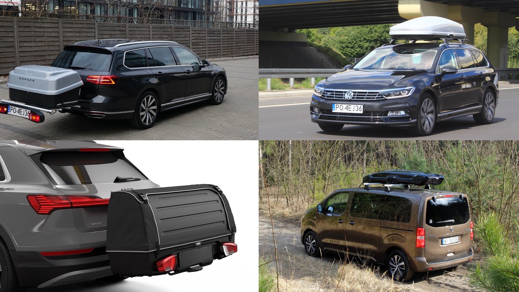- Dodatkowy zewnętrzny bagażnik o pojemności 300-400 l mona zamontować albo na dachu auta, albo za autem – na haku holowniczym
