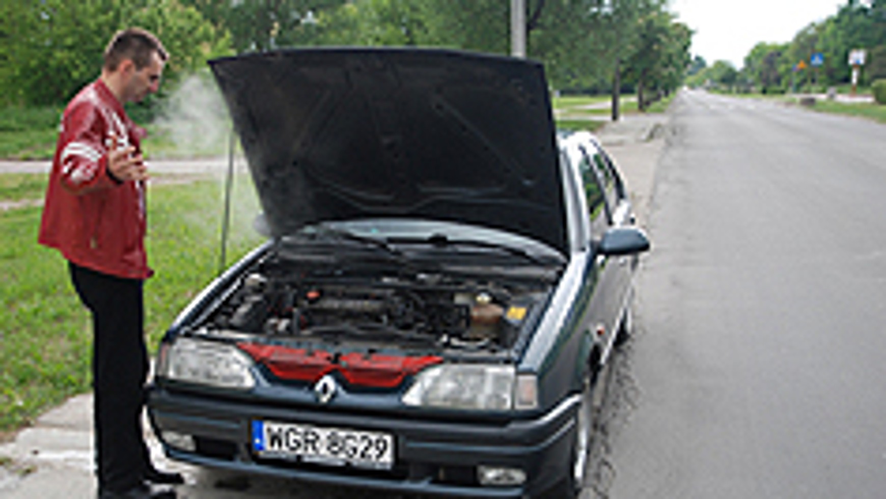Wszystkim, którzy nie chcą stać bezradnie na drodze, proponujemy przeprowadzenie właśnie teraz prostego testu polegającego na uruchomieniu silnika na postoju (jeszcze mniej paliwa zmarnujemy, gdy nie wyłączymy go po jeździe).Włączamy też (jeśli jest) klimatyzację. Wskazówka temperatury płynu chłodzącego zacznie piąć się do góry. Zanim wejdzie na czerwone pole, powinien włączyć się wentylator chłodnicy! Jeśli jest inaczej, szybko odwiedźmy elektryka!Powody przegrzewania się silnikaJeśli tylko temperatura silnika niepokojąco wzrasta, nie próbujmy za wszelką cenę dojechać do warsztatu. Lepiej zatrzymać auto i zajrzeć pod maskę. Zaczynamy od sprawdzenia, czy w zbiorniczku wyrównawczym układu znajduje się choć trochę płynu. Jeśli go brakuje, szukamy źródła wycieku. Poza ubytkiem płynu powodówprzegrzewania się silnika może być wiele. Począwszy od błahostek łatwych do usunięcia na drodze (brudna chłodnica, luźny pasek pompy wody, luźna opaska zaciskowa gumowego węża), po takie, które wymagają dłuższej wizyty w warsztacie (awaria pompy wody, czujnika, elektrowentylatora czy sprzęgła wiskotycznego). Wszelkie usterki układu chłodzenia usuwamy natychmiast!Jak postępować w sytuacji awaryjnej?Jeśli do wzrostu temperatury silnika doszło z powodu zaniedbań serwisowych (np. zbyt niskiego poziomu płynu w chłodnicy) albo w wyniku awarii wentylatora chłodnicy, można próbować obniżyć ją, włączając na maksymalną moc ogrzewanie kabiny oraz nawiew. Jeśli temperatura nie zacznie szybko spadać, należy wyłączyć silnik. W przypadku, gdyby konieczna okazała się dolewka płynu chłodniczego, nie należy jej wykonywać natychmiast. Jeżeli gorący silnik zalejemy zimnym płynem, to konsekwencje mogą być równie poważne i kosztowne, jak w przypadku przegrzania. Najczęściej dochodzi w takich wypadkach do pęknięcia głowicy, a niekiedy ucierpieć może nawet blok silnika. Uwaga! W wielu autach normalna temperatura pracy układu znacznie przekracza 100 ºC. W takiej sytuacji wlanie do chłodnicy czystej wody – nawet jeżeli wszystko jest sprawne – spowoduje "zagotowanie się" silnika!