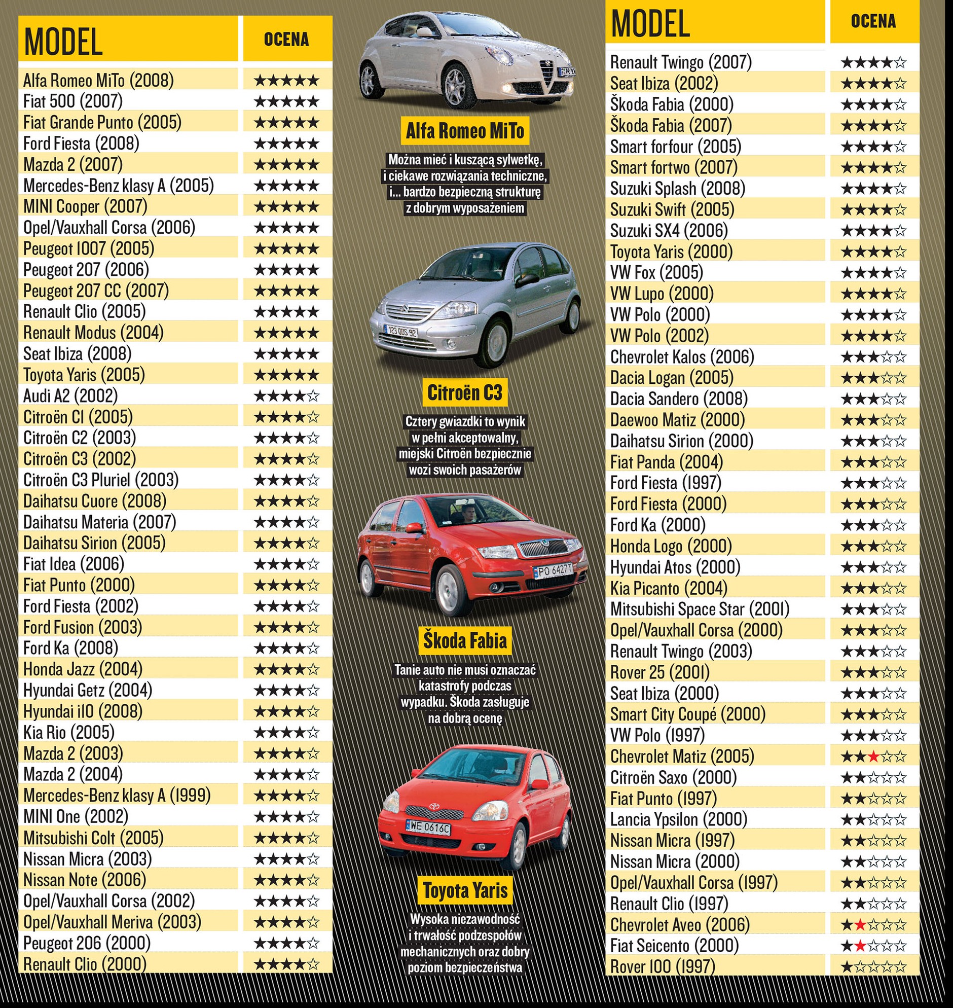 Wyniki testów zderzeniowych aut najmniejszych – segmenty A i B