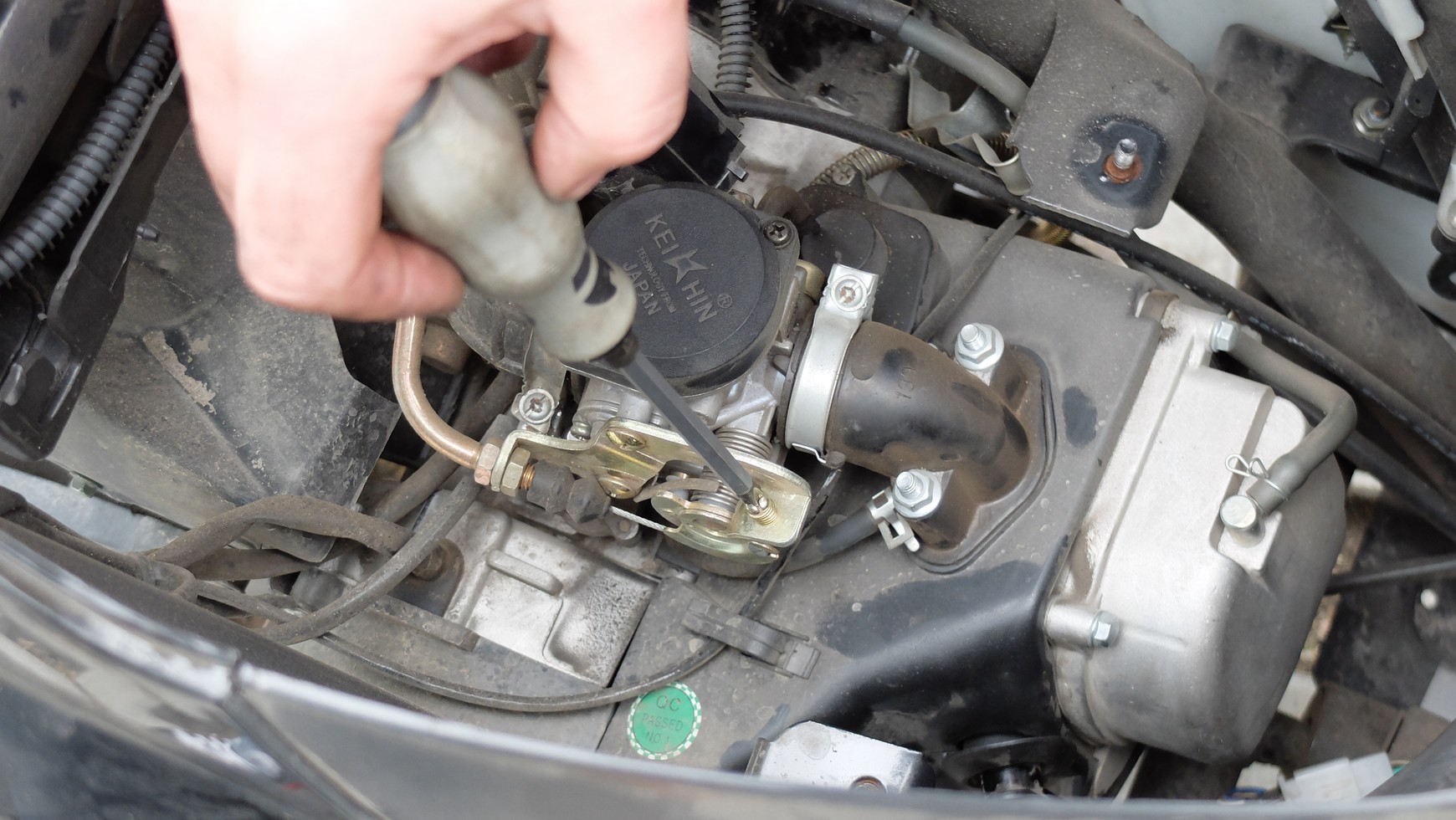 Kolejny krok to regulacja śrubki składu mieszanki. Najlepiej jest wkręcić ją do końca, a następnie wykręcić ją o określoną liczbę obrotów, aż osiągniemy optymalny efekt. Ważnym elementem jest też iglica odpowiadająca za bogactwo mieszanki. Jeśli jest ustawiona za wysoko, silnik zacznie szarpać. Iglica wchodzi w dyszę główną odpowiedzialną za pracę silnika po dodaniu gazu. Przy regulacji sugerujemy się kolorem świecy zapłonowej, która powinna być czarna.