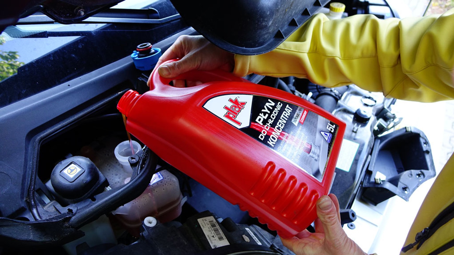 Znając rodzaj (a najlepiej też markę) płynu, jaki krąży w układzie, można dolać koncentratu płynu tego samego rodzaju. Inną opcją, która przecież nie wiąże się z dużym wydatkiem, jest wymiana płynu na nowy – i to jest chyba najwłaściwsza operacja, jaką możemy zrobić.