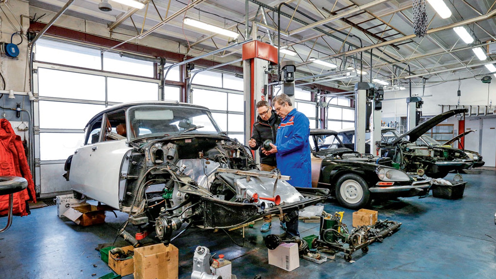 Patrząc na budowę kuli/sfer w DS-ie należałoby powiedzieć – kiedyś wszystko było lepsze! W odróżnieniu do nowszych modeli kule w tym aucie są bowiem rozbieralne i można je regenerować niemalże w nieskończoność! Koszt takiej operacji to ok. 500 zł za sztukę – za 2 tys. zł ciężko byłoby kupić komplet resorów czy nawet sprężyn z amortyzatorami. Hydrulika pierwszych DS-ów była jeszcze zalewana płynem hydraulicznym HF Rouge na bazie roślinnej. Póżniej był LHS (czerwony), LHS2 (bezbarwny). Zielony LHM wprowdzono w 1966 r. Citroën zalecał w DS-ie jego wymianę co 40 tys. km.