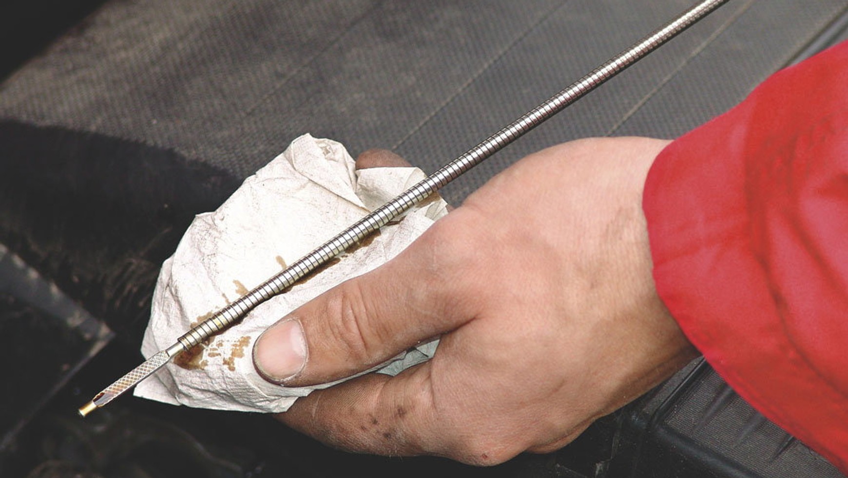 Pomiaru dokonuje się na ciepłym silniku, kilka minut po zakończeniu jazdy, auto powinno stać na płaskim, równym terenie. Uwaga: elektroniczne wskaźniki są pomocne, ale często pokazują... co chcą! Jeśli poziom oleju szybko spada, a macie do czynienia z „luźnym” silnikiem, możecie zacząć od wymiany oleju na gęstszy, np. 10W-50 (lub 60) zamiast 5W-40.
