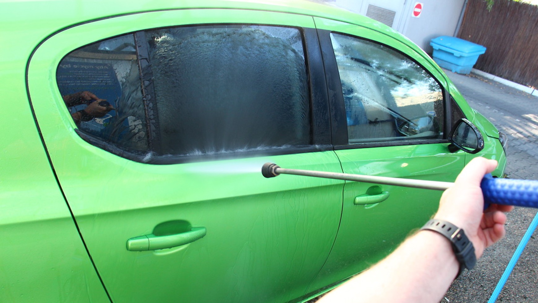 Jednak niewłaściwe mycie samochodu za pomocą lancy z wodą pod wysokim ciśnieniem może być bardziej niebezpieczne dla naszego samochodu niż brudne szczotki w myjniach automatycznych. Nie wszyscy zdają sobie sprawę z tego, pod jakim ciśnieniem woda wypływa z lancy – może to być ponad 100 barów! Taki strumień potrafi przeciąć skórę człowieka, więc zbyt blisko przyłożona dysza bez problemu poradzi sobie też np. z samochodowymi uszczelkami lub z łatwością „oskalpuje” wasz pojazd z oznaczeń i emblematów.