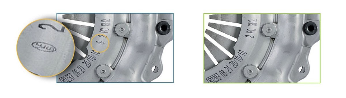 Określenie czy dane sprzęgło jest produktem nowym czy poddanym fabrycznej regeneracji jest możliwe także, gdy nie posiadamy jego opakowania ani możliwości sprawdzenia numeru referencyjnego. Wystarczy przyjrzeć się dokładnie tarczy sprzęgłowej lub tarczy dociskowej sprzęgła. Na obu tych elementach, w przypadku produktu regenerowanego znajduje się widoczne logo VES. Jest to skrót od “Valeo Exchange System”, czyli systemu zbiórki rdzeni, funkcjonującego obecnie w niektórych krajach europejskich. Produkt nowy nie posiada w tym miejscu żadnego oznaczenia, logo VES daje nam więc jasną informację.