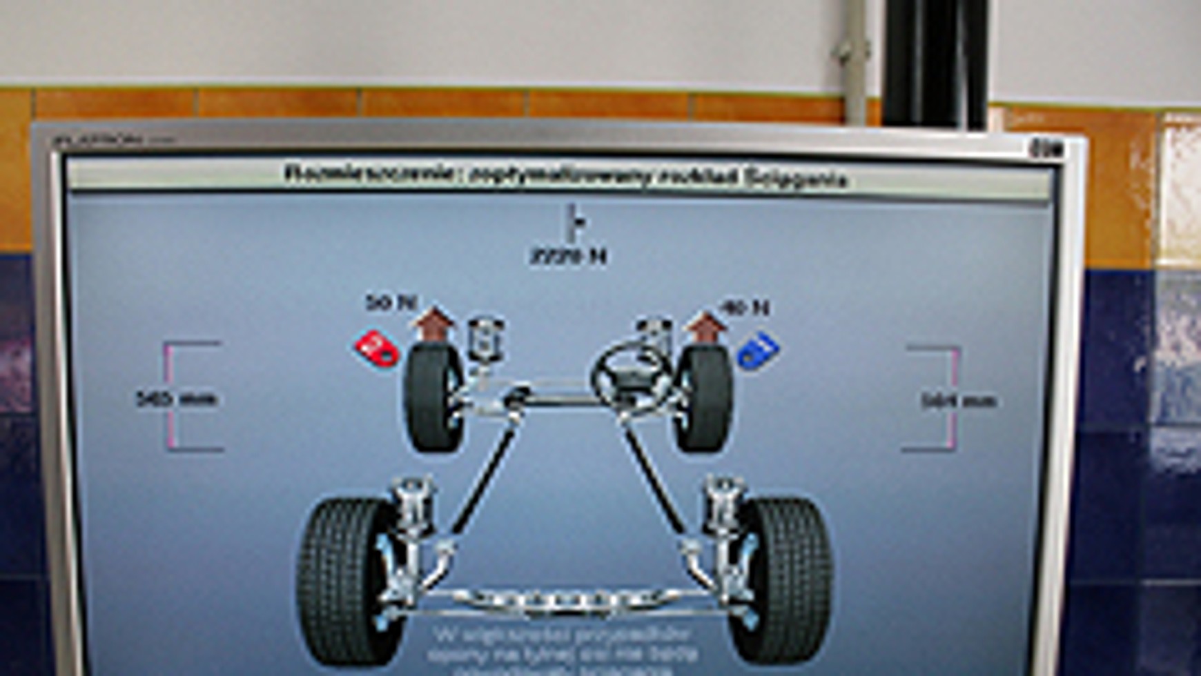 Przy tak dużych obrotach wystarczy nawet najmniejsza jego niedoskonałość, żeby spowodować potężne wibracje odczuwalne na kierownicy. Kamyczek wbity w bieżnik, drobne wybrzuszenie opony albo po prostu nierówny rozkład materiału na obwodzie koła dadzą o sobie znać 14 razy na sekundę! Drżenie to wierzchołek góry lodowejWibracje na kierownicy to najmniejszy, choć uciążliwy problem. Mocniejsze, w żaden sposób nieprzefiltrowane drgania działają na oponę, zawieszenie, układ kierowniczy, a nawet przenoszą się na skrzynię biegów i mechanizm różnicowy. Poza przyspieszonym zużyciem tych elementów grozi nam drastyczne pogorszenie właściwości jezdnych auta. Nie ignorujmy więc drżenia kierownicy, nawet jeśli staje się ono wyczuwalne dopiero przy wyższych prędkościach. Poniżej prezentujemy kilka sposobów na pozbycie się drgań. Który z nich okaże się skuteczny, zależy od konkretnego przypadku. Czasem konieczne może okazać się wykonanie wszystkich czynności.Pierwsza możliwość: doważanie Klasyczny sposób działania polega na wyważaniu kół po zdjęciu ich z samochodu. Metoda ta pozwala wyeliminować problemy wynikające z nierównomiernego rozkładu mas w feldze lub oponie. Czasem jednak problem tkwi głębiej. Koło mocowane jest na wyważarce inaczej niż na samochodzie, a w dodatku wraz z nim obracają się jeszcze półoś, piasta, tarcza hamulca oraz kołpak. Także te elementy mogą być niewyważone, powodując podczas jazdy uciążliwe drgania. Sposobem na pozbycie się ich jest doważanie kół na samochodzie. Specjale urządzenie wprawia w ruch koło kręcące się po podstawionych pod nie rolkach,a wtedy badane jest wyważenie całego układu. Zabieg ten zaleca się przeprowadzać we wszystkich autach o podwyższonych osiągach! Cena: 60-120 zł.Druga możliwość: ustawienie geometriiCzasem pomimo wyważenia, a nawet doważenia kół, samochód nadal źle się prowadzi – kierownica drży, a auto znosi na boki. Wtedy należy sprawdzić stan zawieszenia. Jeśli jakakolwiek część jest wybita, zużyta lub uszkodzona, należy ją wymienić. Dopiero później można przystąpić do sprawdzenia i ustawienia geometrii zawieszenia. Bardzo często to właśnie ono jest powodem niewłaściwego zachowania auta. Wystarczy, że koła są nieodpowiednio pochylone, by samochód fatalnie się prowadził i zbaczał z toru jazdy. Jeżeli opona styka się z asfaltem np. krawędzią, a nie czołem bieżnika, może to powodować wibracje podobne do wywoływanych przez niewyważenie kół. Dobry mechanik na podstawie śladów na oponie może w przybliżeniu określić, co jest popsute lub źle ustawione. Niestety, nie zawsze skorygowanie parametrów do takich, jakie zaleca producent, gwarantuje poprawę zachowania auta. Bywa, że po dłuższej jeździe z nieprawidłowymi nastawami zawieszenia opony są już tak zdeformowane, że trzeba je wymienić. Przy okazji wizyty w warsztacie zajmującym się naprawami zawieszeń warto sprawdzić kondycję amortyzatorów. Za regulację geometrii zapłacimy 100-240 zł, test amortyzatorów kosztuje zaś ok. 30 zł.Trzecia możliwość: wyważanie z testem drogowymNajnowocześniejsze wyważarkipozwalają sprawdzić zachowanie koła w warunkach zbliżonych do panujących na drodze. Widoczne na zdjęciu urządzenie Hunter GSP9700 wyposażone jest w dodatkową rolkę, która dociska koło z siłą ponad 6 tys. niutonów (ok. 600 kg). Dzięki temu można zmierzyć siły, które działają podczas obracania się obciążonego koła. Jest to tzw. test drogowy. Maszyna potrafi np. ocenić, czy problem leży po stronie opony, czy też winna jest felga. Może również poinformować mechanika, jak przesunąć oponę na feldze, by niedoskonałości felgi i opony wzajemnie się skompensowały. W dużym skrócie cała sztuka polega na tym, żeby najlżejsza część opony znalazła się nad najcięższą częścią felgi. Urządzenie mierzy też siły boczne działające na styku drogi i opony, czyli właśnie to, co powoduje ściąganie pojazdu. Mając wyniki pomiarów dla wszystkich czterech kół, wylicza, w jakiej konfiguracji powinny być one zamontowane na aucie, aby wyeliminować wibracje i ściąganie.Zdaniem ekspertaSkuteczność działania wyważarki z testem drogowym była dla nas dużym zaskoczeniem. Przy jej pomocy udaje nam się usuwać drgania, które występują po najbardziej starannym wyważeniu kół na innych maszynach. Urządzenie potrafi też wykryć uszkodzenia konstrukcji nośnej opony, których nie zauważy nawet doświadczony mechanik.