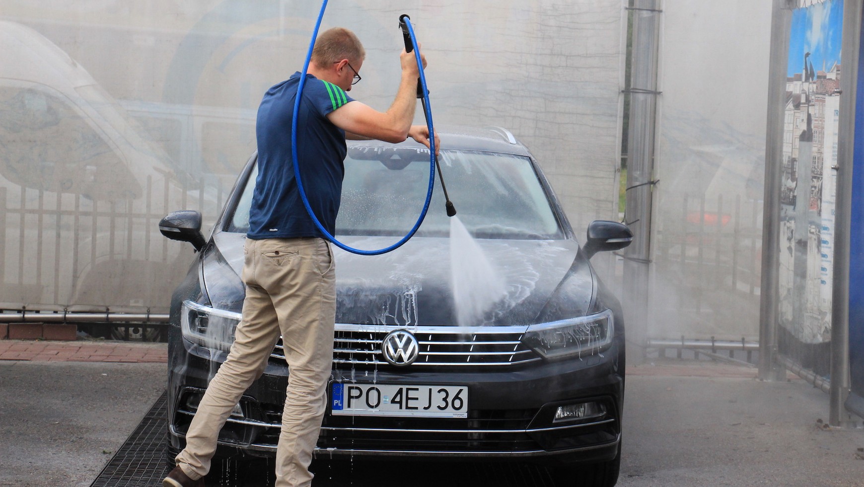 Przejdźmy teraz przez wszystkie etapy mycia samochodu na myjni bezdotykowej. Zaczynamy od mycia wstępnego - warto przez chwilę opłukać samochód z tak zwanej pierwszej warstwy brudu. Mycie samochodu zawsze powinniśmy zaczynać od dachu auta, kierując się ku dołowi. Na samym końcu możemy spłukać progi, koła, nadkola i felgi. W drugim etapie możemy wybrać mycie szamponem, proszkiem lub aktywną pianę. Substancje trzeba nakładać na karoserię długimi poziomymi ruchami od dołu do góry. Tuż po nałożeniu warstwy szamponu, czy piany powinniśmy odczekać około minuty, aby środek myjący mógł zacząć działać. To najważniejszy moment w procesie czyszczenia samochodu.