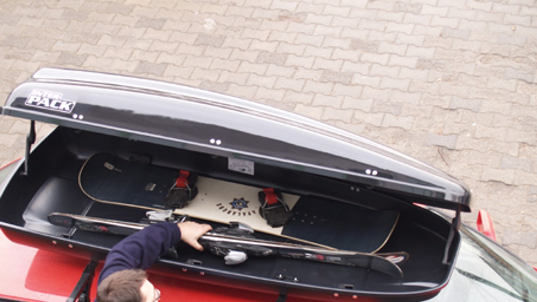 ECO 430 Bardzo prosty w formie, pakowny boks o pojemności 430 l, pozwalający przewozić narty o długości do 165 cm. Do belek montuje się go w sposób tradycyjny – przy użyciu stalowych obejm dociąganych plastikowymi nakrętkami. Brak wzmocnień stalowych. Z przodu dodatkowy zatrzask zamykający. + Niska cena, uchwyty mocujące zajmują mało miejsca w boksie, duża pojemność użytkowa.0- Niezbyt atrakcyjny wygląd, konieczność pamiętania o zamknięciu dodatkowego zatrzasku.CENA (zł): 400Interpack Carver 6.5 Bagażnik o długości 192 cm (maksymalna długość nart ok. 185 cm) wyposażony w system obustronnego otwierania i zamek centralny. Jest system szybkiego mocowania do belek (zajmujący stosunkowo mało przestrzeni użytkowej), możliwy montaż na belkach aluminiowych (na wsuwki). Pojemność 430 l.+ Możliwość załadunku i rozładunku z obu stron samochodu, stalowe wzmocnienia, wysoka ładowność (75 kg), łatwy montaż, 5 lat gwarancji.- Dość wysoka cena, trzeba uważać na piąte drzwi.CENA (zł): 1449