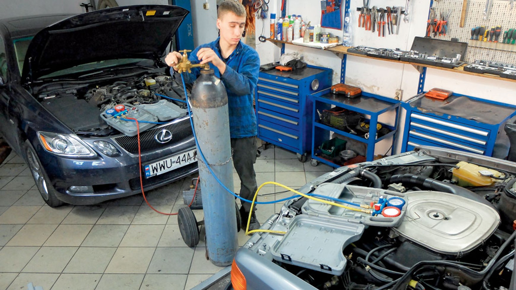 Nasz Mercedes okazał się zagadkowym przypadkiem. Po podłączeniu aparatury okazało się, że klimatyzacja jest całkiem pusta, ale po nabiciu azotem ładnie trzymała ciśnienie. Minęło pół godziny, godzina, dwie – i nic nie wyleciało. Diagnoza: układ jest szczelny, choć był pusty. Jak to możliwe? To tylko przypuszczenie: być może przed załadowaniem na statek w Japonii (auto pochodzi z Japonii) klimę opróżniono, by nie wozić do Europy freonu. Może robi różnicę to, czy gaz uleci u nas czy za oceanem?