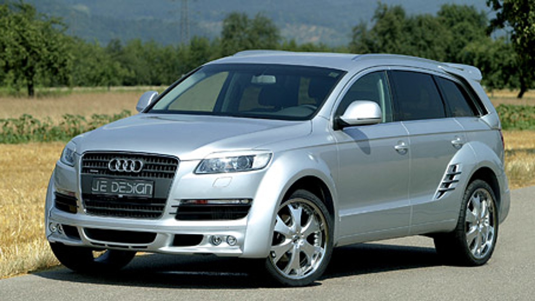 JE Design już wcześniej zaprezentował modyfikacje Q7, nowa oferta dotyczy przede wszystkim zmian stylistycznych. Główną rolę odgrywa tutaj plastik. Z przodu zamontowano dodatkowy spojler z podwójnymi światłami przeciwmgielnymi, który polepsza docisk osi przedniej. Agresywniej wyglądają teraz lampy, na których zamontowano niezbędne brewki. Przedni spojler płynnie nawiązuje na przednie nadkola, z którymi zintegrowano progi i panele ochronne na spodzie drzwi. Przed tylnymi nadkolami, które płynnie przechodzą do tylnego spojlera, znajduje się teraz ogromny wlot powietrza, ułatwiający chłodzenie hamulców.Z tylnego spojlera, w którym zamontowano dyfuzor, wychodzą końcówki tłumika – dwa równoległoboki po obu stronach auta. Na górnej krawędzi tylnej klapy zamontowano spojler, który nawiązuje na poszerzone tylne słupki, poprawiające aerodynamikę auta. Całość dopełniona jest ogromnymi alufelgami 10 x 22“ i oponami w rozmiarze 295/30 R 22. Zawieszeniem steruje nowa jednostka kierująca, która pozwoliła obniżyć prześwit.