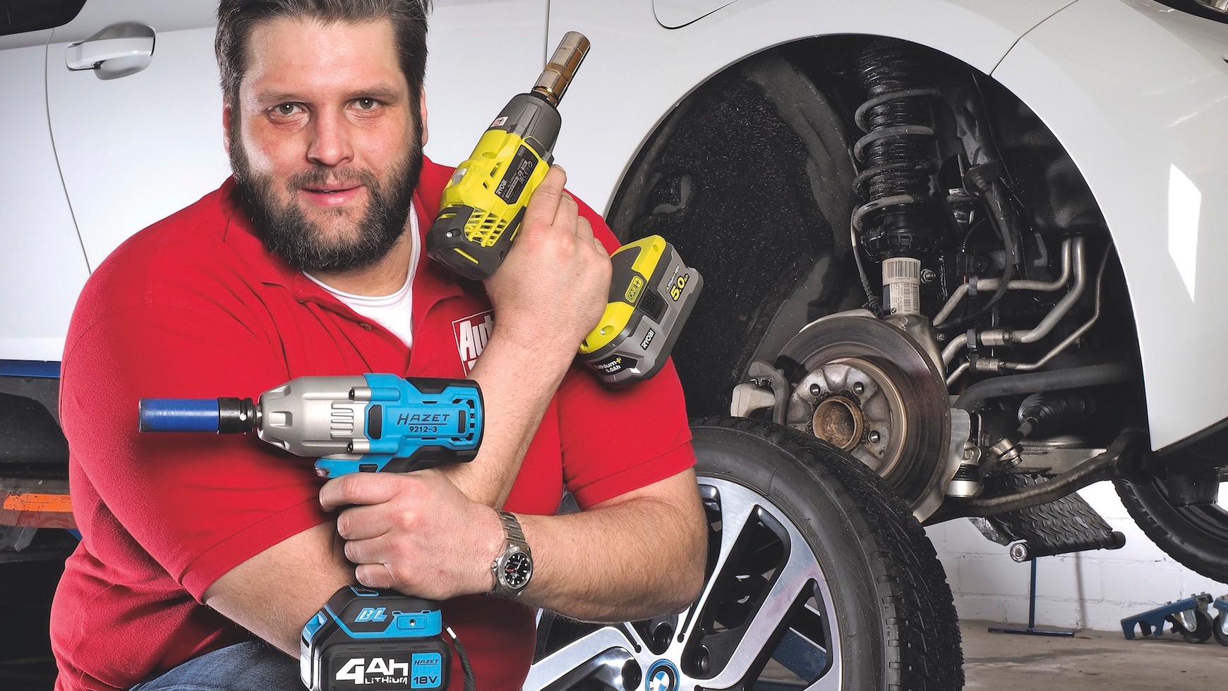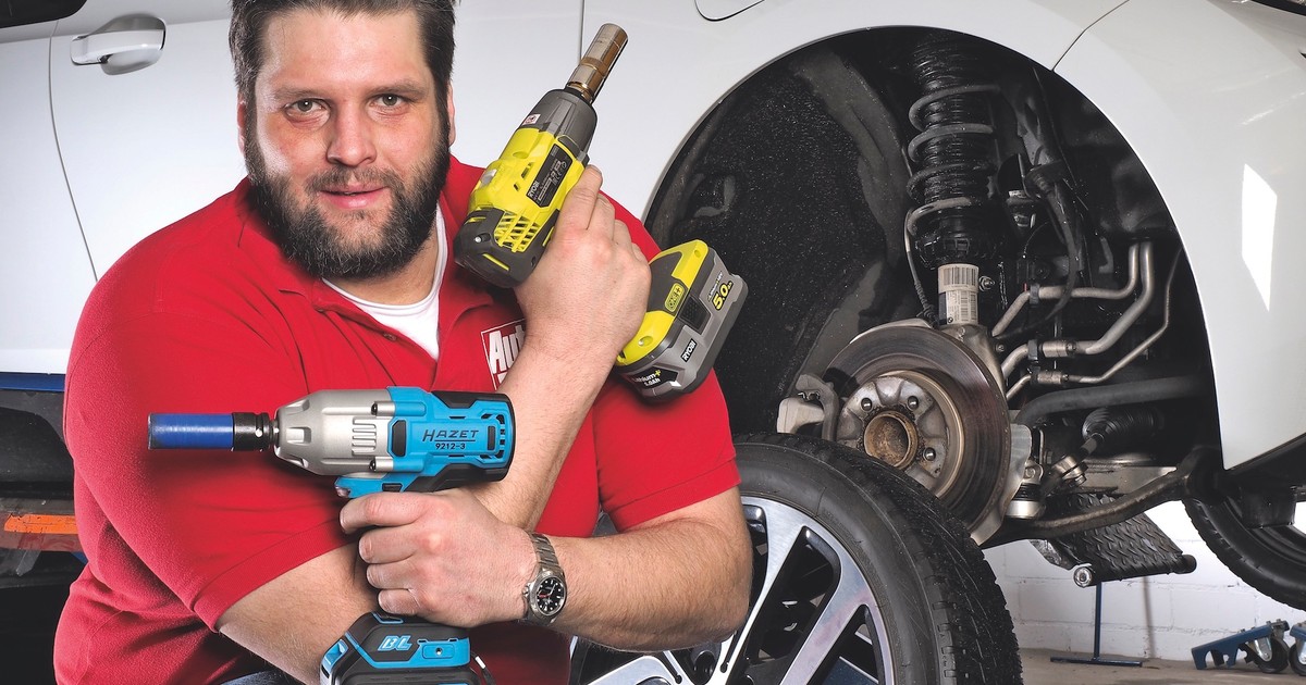 Klucz udarowy na baterie nie wymaga pracy na kablu, nie należy się też obawiać, że nie da sobie rady ze śrubami do kół — 400 Nm momentu dla klucza akumulatorowego to wartość tylko trochę ponadprzeciętna — są klucze 800 Nm i mocniejsze (jednak do pracy przy wymianie kół w aucie 400 Nm wystarczy z dużym zapasem). Jeśli chcemy mieć narzędzie, które wytrzyma lata pracy w warsztacie, warto kupić klucz udarowy z silnikiem bezszczotkowym, jeżeli jednak będziemy korzystać z niego okazjonalnie, wystarczy tańszy klucz udarowy z silnikiem szczotkowym. Klucze na baterie w komplecie z bateriami są droższe niż sieciowe, jeśli jednak mamy w domu wkrętarkę na baterie litowe 18V, warto sprawdzić, czy nie jest dostępny klucz udarowy zasilany tymi samymi bateriami.