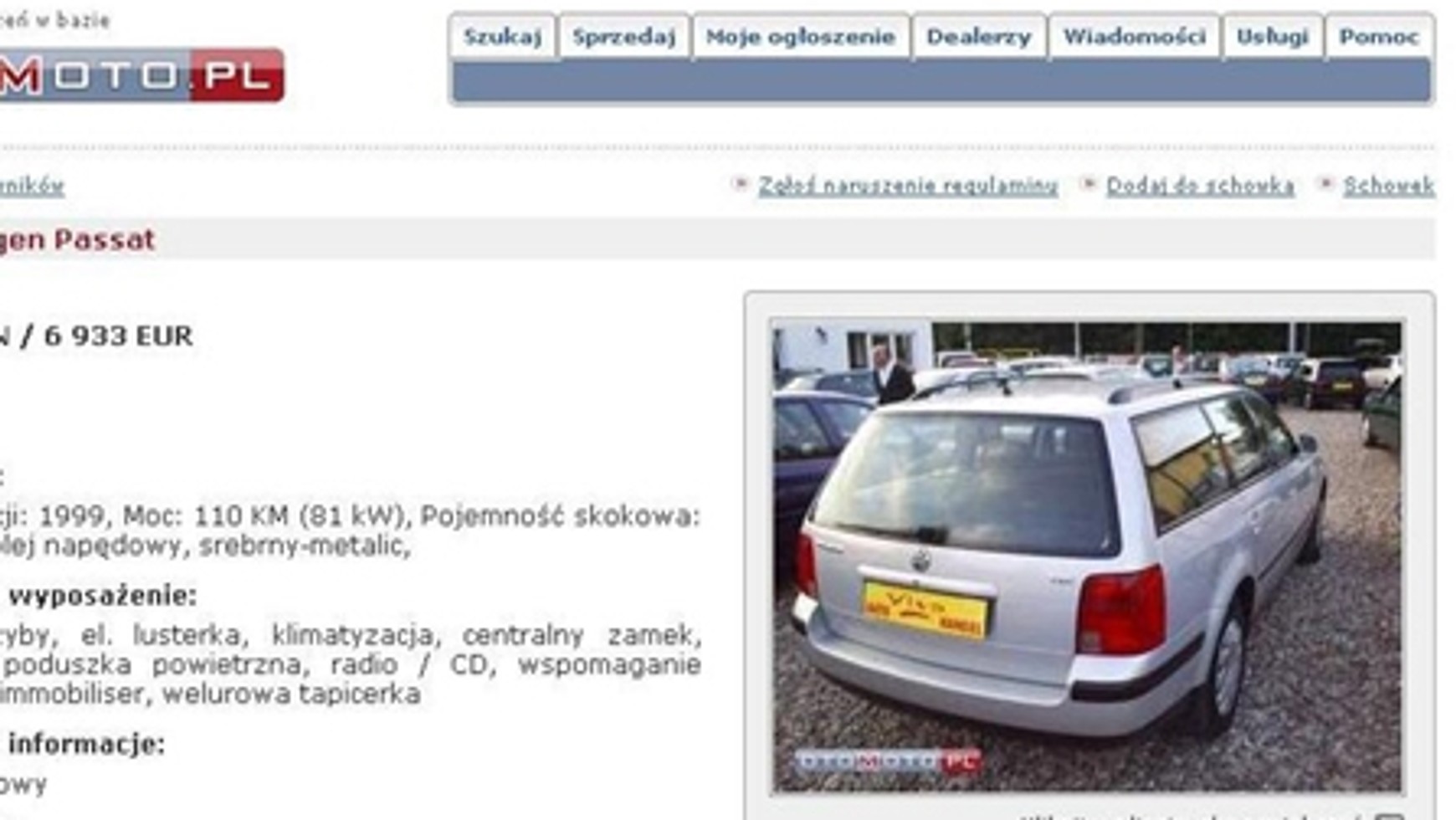 Proponuję obejrzenie kilku stron z ogłoszeniami o sprzedaży samochodów (wykonałem zrzuty z ekranu, ponieważ zdaję sobie sprawę z tego, że za jakiś czas po omawianych przeze mnie ogłoszeniach nie będzie śladu i dowody rzeczowe znikną, a umieszczając je na „moim” serwerze, zapewniam im „nieśmiertelność”). Na początek link do wspomnianego na początku Passata: http://tylik1.w.interia.pl/artykul/allegro.html.W opisie możemy znaleźć m.in.: „Moc silnika 115 KM” oraz „Informacje dodatkowe: bezwypadkowy”.