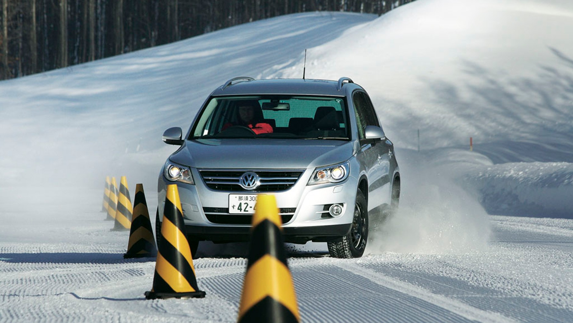 Zalety: Dobra trakcja i krótkie drogi hamowania na śniegu, przewidywalne prowadzenie na mokrej drodze. Wady: Słabe prowadzenie boczne na śniegu, dłuższe drogi hamowania na mokrym.