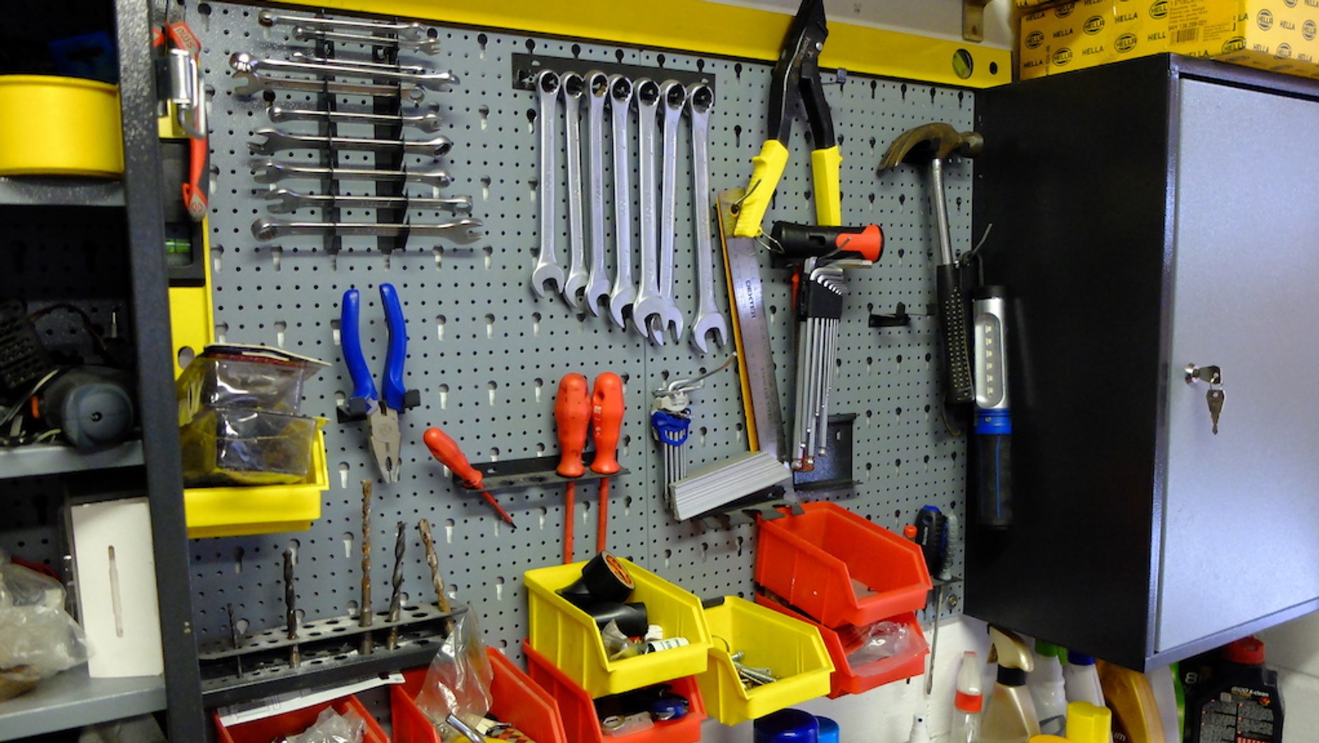 Do wyposażenia garażu powinny też należeć: klucze płaskie i płasko-oczkowe, zestaw imbusów, torxów i śrubokrętów, do tego szczypce (zaciskowe i regulowane) oraz młotki o różnej wadze.
