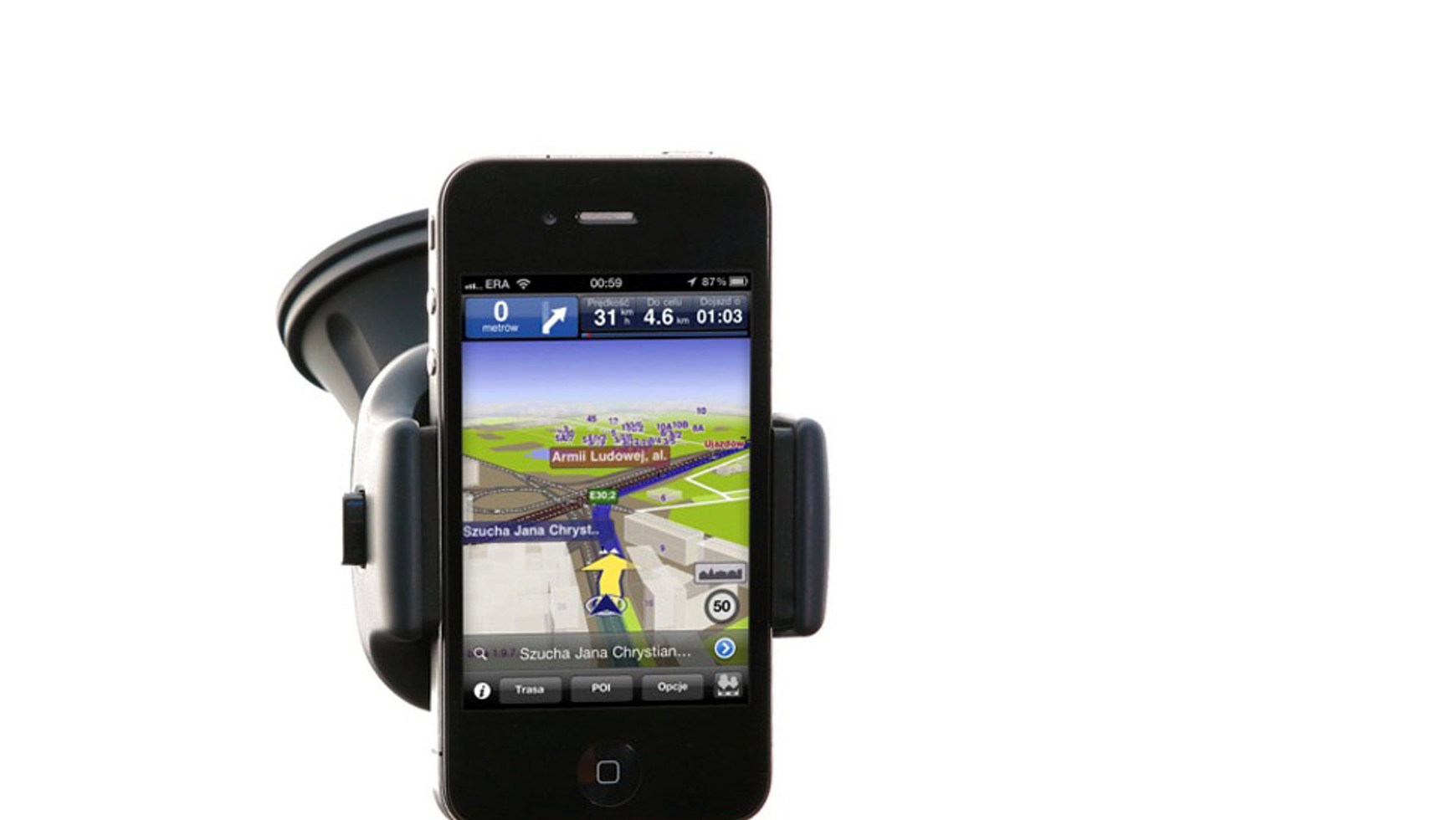 Bezpłatny Google, inne do kupienia w Apple Store - W urządzeniach Apple, takich jak iPhone czy iPad, standardowo instalowany jest pakiet Google Maps. Niestety, w naszym kraju ma on ograniczoną funkcjonalność. Program pozwala na przeglądanie mapy po połączeniu z siecią GSM (mapa znajduje się na serwerze Google), a także wyznaczenie trasy. Niestety, nie ma możliwości aktywnej nawigacji, czyli wyświetlania wskazówek i przesuwania mapy podczas jazdy.
