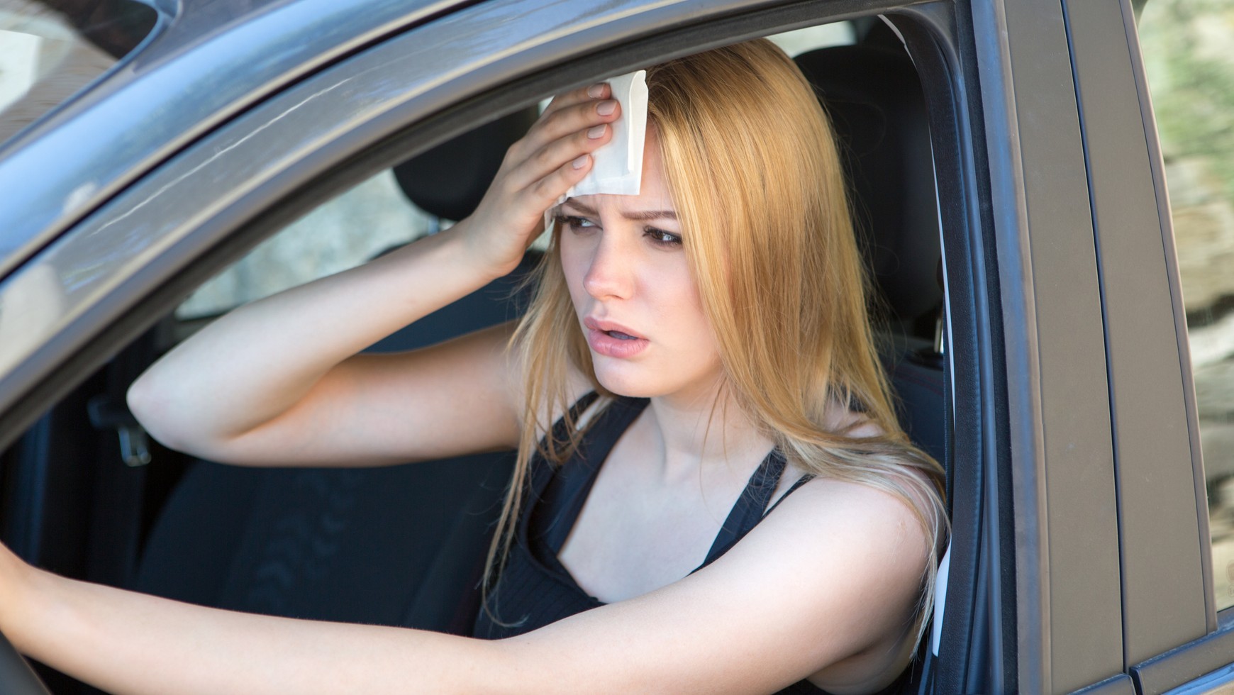 Kiedy jesteś na dworze, organizm schładza się poprzez pocenie. Potrzebuje do tego dużo wody. Parowanie wody ze skóry obniża jej temperaturę. Ale w samochodzie, gdzie plecy spoczywają na fotelu, nie ma warunków do skutecznego schładzania tym sposobem – wiatr nie osuszy ubrania, które zrobi się wilgotne. Dlatego pij płyny, najlepiej wodę, ale z umiarem.