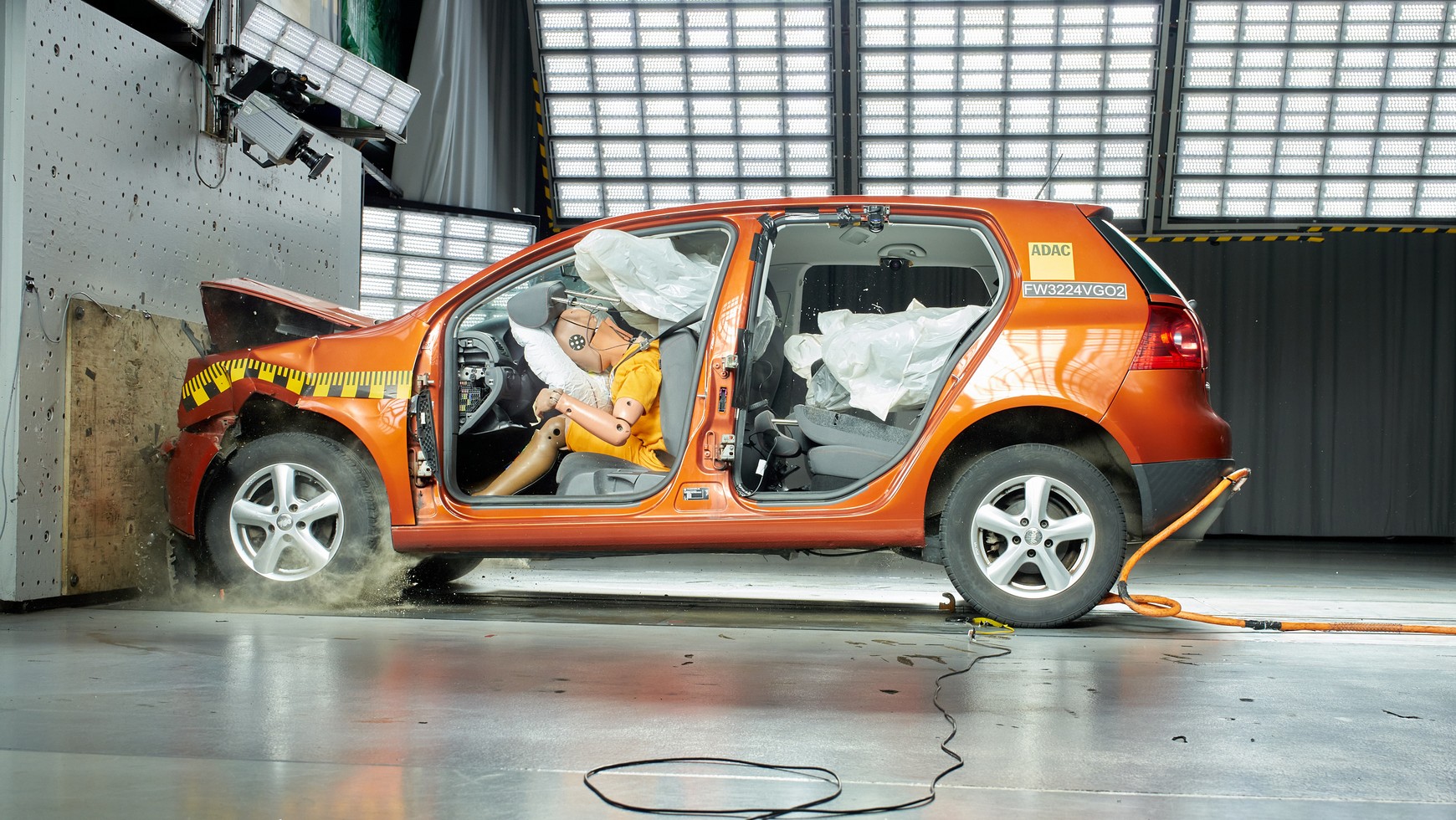 Eksperci z ADAC podkreślają, że nawet przy stosunkowo niskiej prędkości podczas wypadku działają ogromne siły. Przykładowo koło o masie około 15 kg (opona z felgą) przelatuje przez pojazd z siłą ok. 600 kg. Taki niezabezpieczony ładunek może zabić.