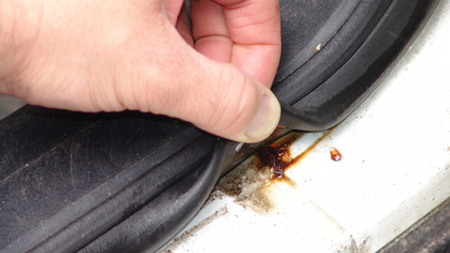 Skorodowane krawędzie drzwi to częsty problem, nierzadko wynikający z tego, że.. podczas nakładania masy antykorozyjnej zostały zatkane odpływy wody.