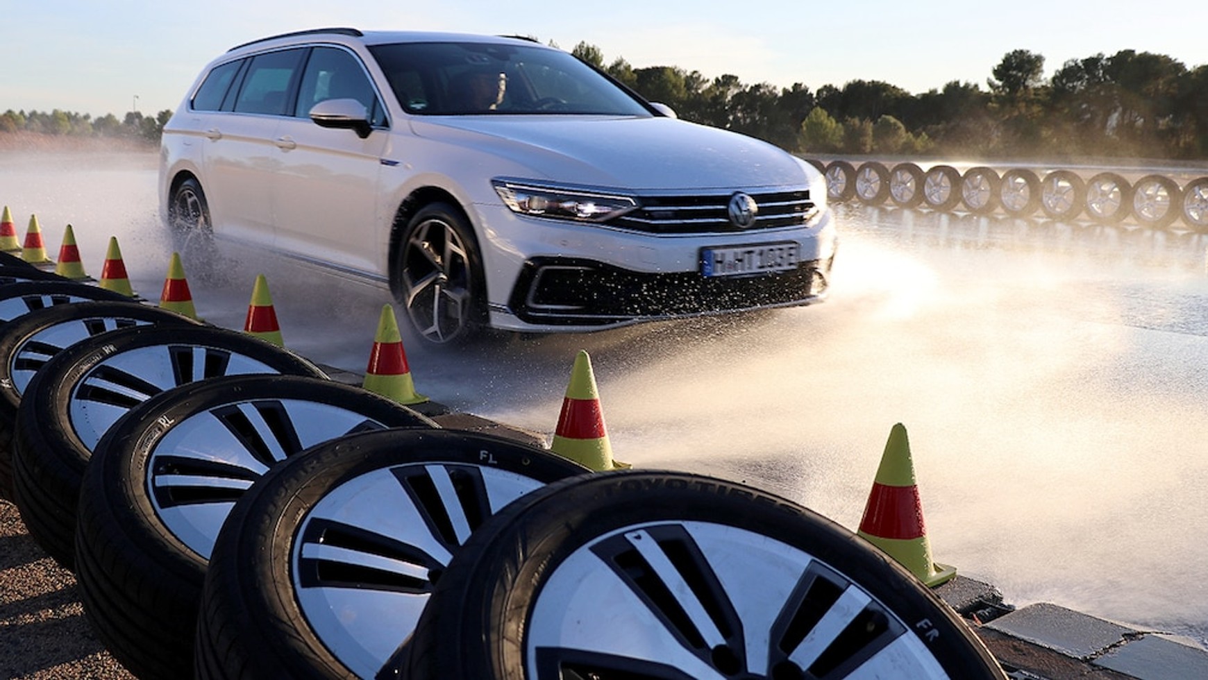 W tym roku testujemy opony letnie w rozmiarze 215/55 R 17. Takie ogumienia pasuje do tak popularnych modeli klasy średniej, takich jak m.in. Volkwagen Passat, Skoda Superb czy Ford Mondeo, ale też do wielu SUV-ów czy crossoverów, np. do Audi Q2 czy do Volkswagena T-roc. Do rundy kwalifikacyjnej trafiło 50 modeli opon, które zostały kupione anonimowo w ogólnodostępnych sklepach, żeby wykluczyć jakiekolwiek manipulacje ze strony producentów. Podczas rundy kwalifikacyjnej sprawdzamy długość dróg hamowania na suchej i mokrej nawierzchni – tylko te modele opon, które wykażą się dobrymi wynikami w tych próbach, przechodzą do kolejnych etapów badania, obejmujących m.in. próby podatności na aquaplaning, prowadzenia, ale także badanie trwałości czy oporów toczenia.