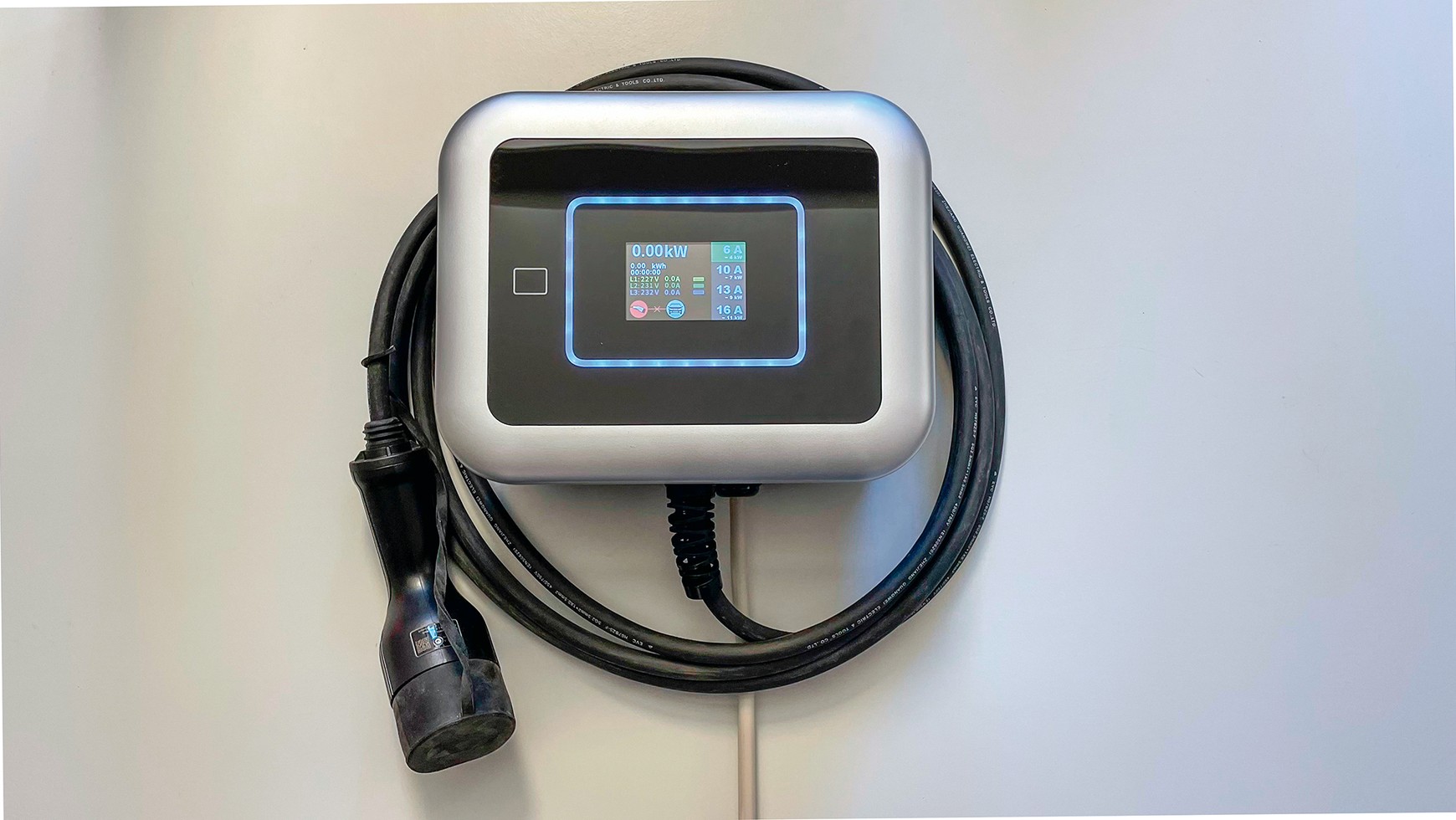 Niewielka, estetycznie wykonana skrzynka z wyświetlaczem, do tego 5 metrów zamontowanego na stałe kabla z wtykiem Typ-2. Obsługa jest dziecinnie prosta – urządzenie wyposażono w wyłącznik awaryjny, przycisk do uruchamiania i kończenia ładowania, do tego ekran dotykowy.