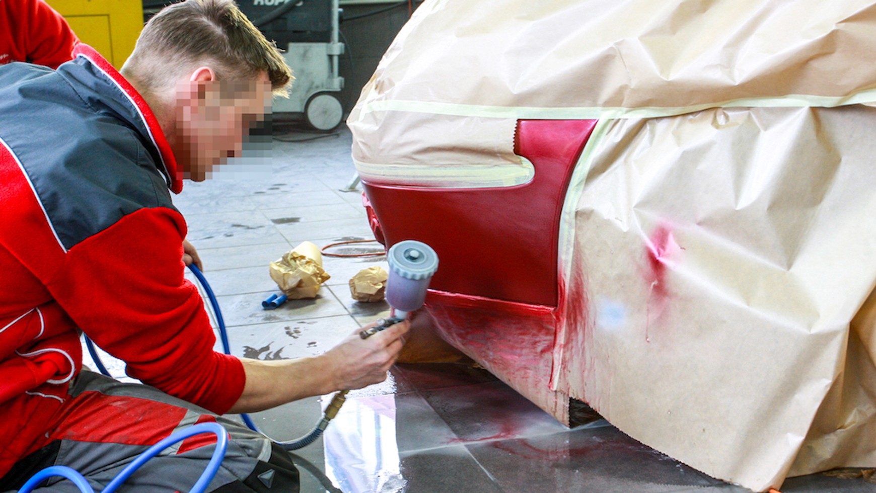 Często przed nałożeniem lakieru przygotowywana powierzchnia wygląda na prawie idealną, już nie chce się poprawiać; po natryśnięciu koloru niedoróbka wychodzi na jaw w całej okazałości, potem handlarz z rozmysłem prezentuje auto pod warstewką kurzu. Tani lakiernicy potrafią narozrabiać jeszcze w inny sposób: lakierując maskę, osłaniają papierem tylko sąsiadujące elementy auta, choć arkusz folii na cały samochód kosztuje tylko 2 złote.
