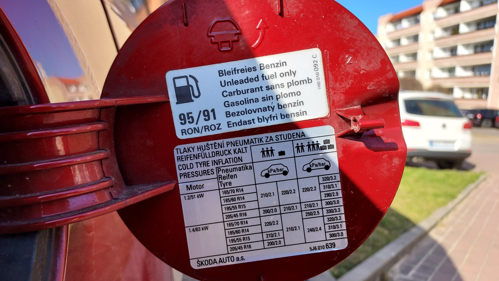 Co znajduje się na naklejce przy wlewie paliwa?