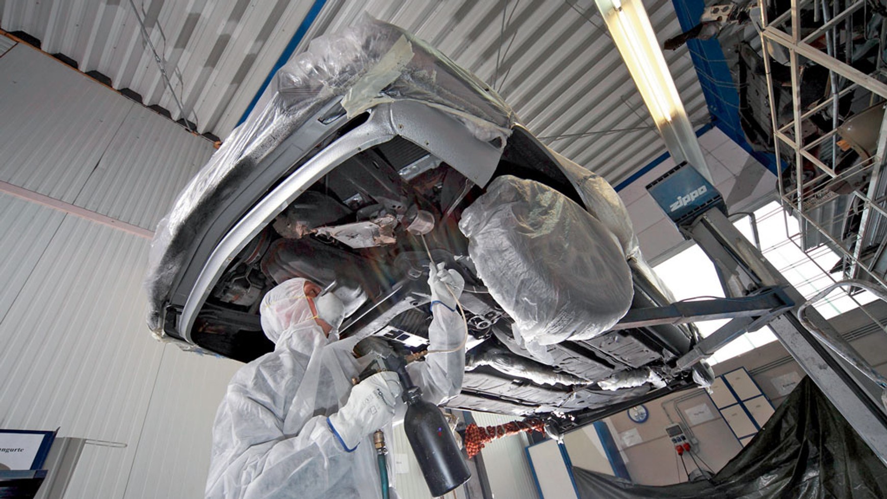 Podłużnice, progi, zagięcia blach – w te miejsca musi trafić środek ochronny. Można go też nanieść na panele podłogi.