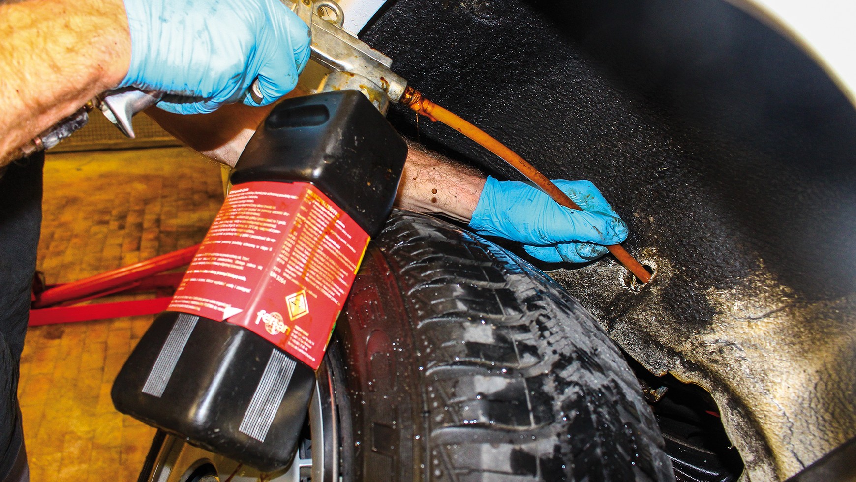 To samo pod maską: środek antykorozyjny wprowadzamy w podłużnice i inne profile zamknięte przez otwory technologiczne.