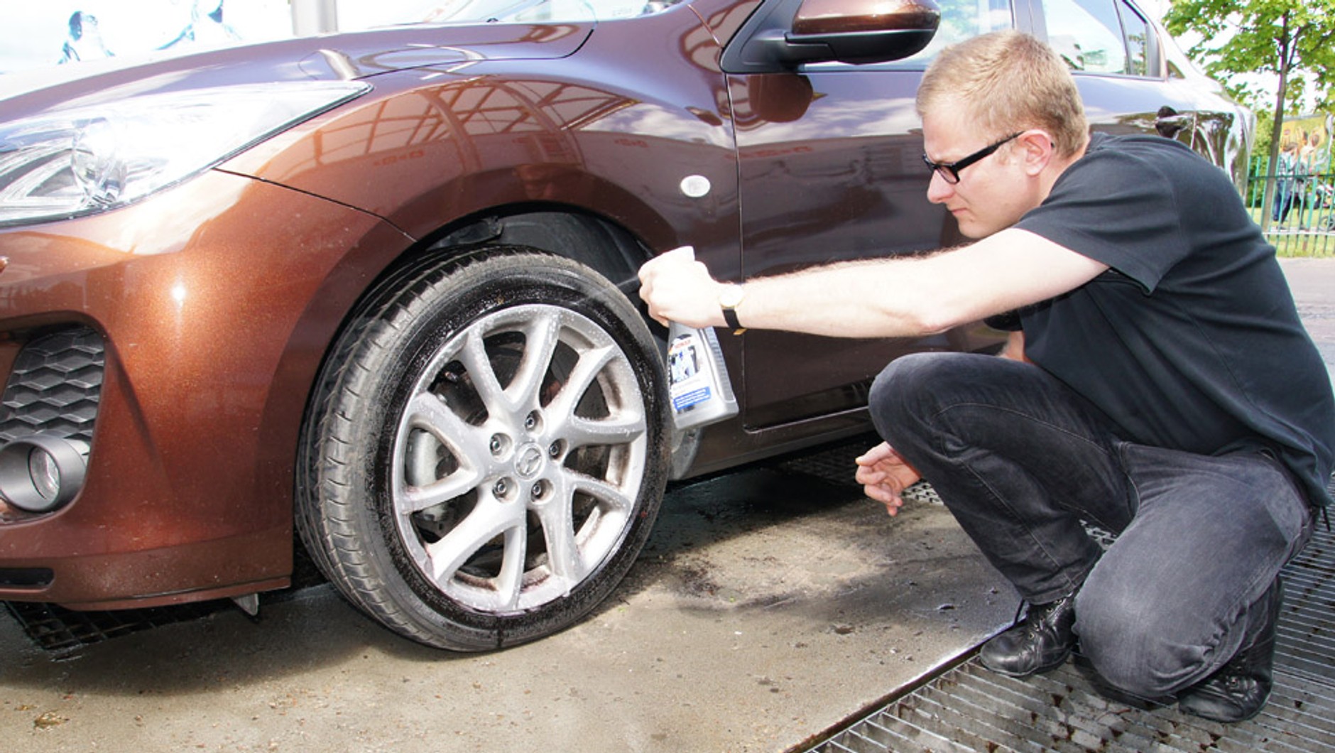 W celu uzyskania efektu czarnych opon, które podkreślają wygląd felg, nanosimy na nie specjalny preparat w spreju.