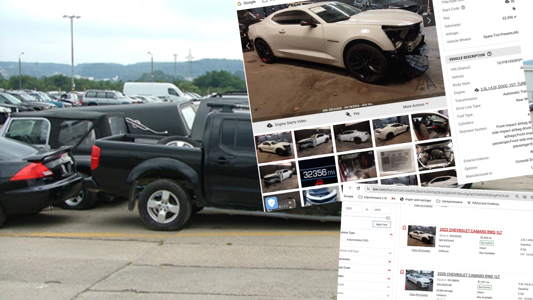 Mirek: Mnóstwo, ale są nie tylko powypadkowe, nikt tego nie ukrywa. Są więc auta po zalaniu (Fresh water), popowodziowe (Flood), spalone (Total burn), po gradobiciu (Hail), z odpalonymi poduszkami (Airbags deployed), z nieodpalonymi poduszkami (Intact), jeżdżące (Run&Drive) i takie, które tylko odpalają (Starts) albo nie odpalają (Stationary). Zdarzają się nawet samochody z paroma dziurkami po kulach, zgnite w środku (Biohazard), po aktach wandalizmu… Ja to widzę tak, że zdarza się, że ktoś nie może spłacić auta, wie, że mu je zabiorą i w złości je niszczy, a potem my to kupujemy i naprawiamy. W każdym razie przy każdym samochodzie jest opis, tytuł prawny i takie tam, tak więc z grubsza wiesz, w co wchodzisz.