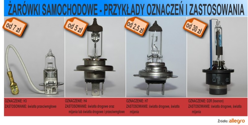 W różnych modelach samochodów są różne żarówki. Każda żarówka ma nabity na swojej obudowie symbol. W reflektorach jest to H4 lub H7. Różnią się one przede wszystkim konstrukcją. Te pierwsze są żarówkami wielowłóknowymi, te drugie jednowłóknowymi. Oznacza to, że w przypadku żarówki H4 pierwsze włókno odpowiada za światło mijania, drugie za światło drogowe. Natomiast H7 może funkcjonować w układzie z ksenonem.