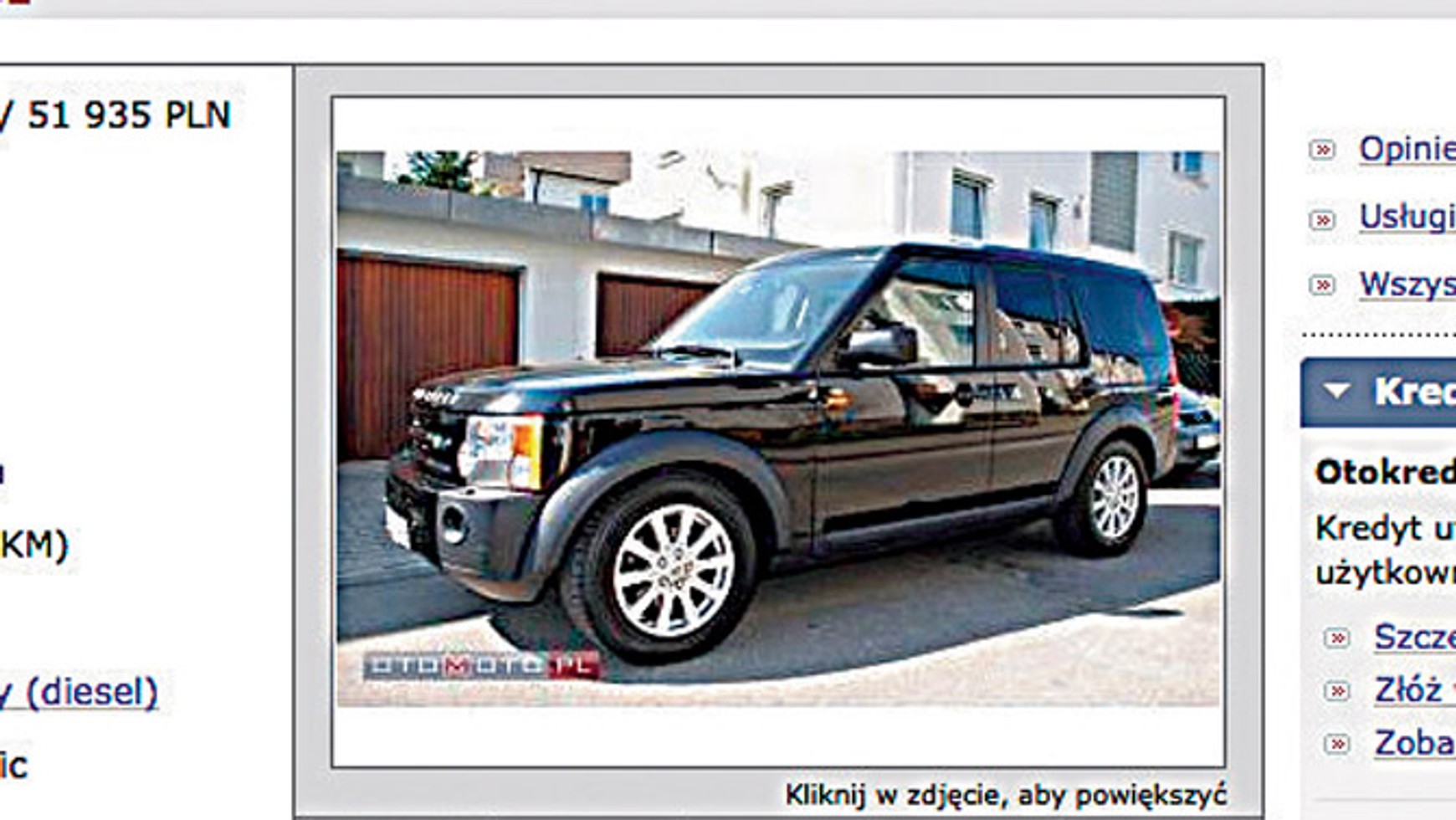 Żeby pokazać mechanizm oszustwa, wybraliśmy jedno z takich ogłoszeń. Rzekoma okazja to Land Rover Discovery TD V6 rocznik 2008. Samochód wyceniono na niecałe 52 tys. zł. To jak na ten model tanio – mniej niż połowa ceny. Auto na zdjęciach wygląda jak nowe. W danych kontaktowych nazwa łódzkiego komisu, jest link do podstrony sprzedawcy na portalu Otomoto.pl.